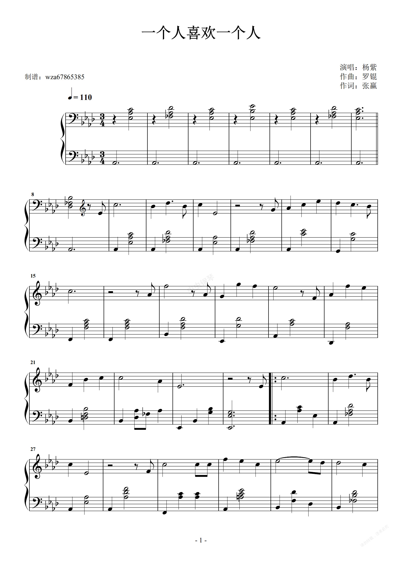 钢琴谱:一个人喜欢一个人-余生,请多指教 电视剧