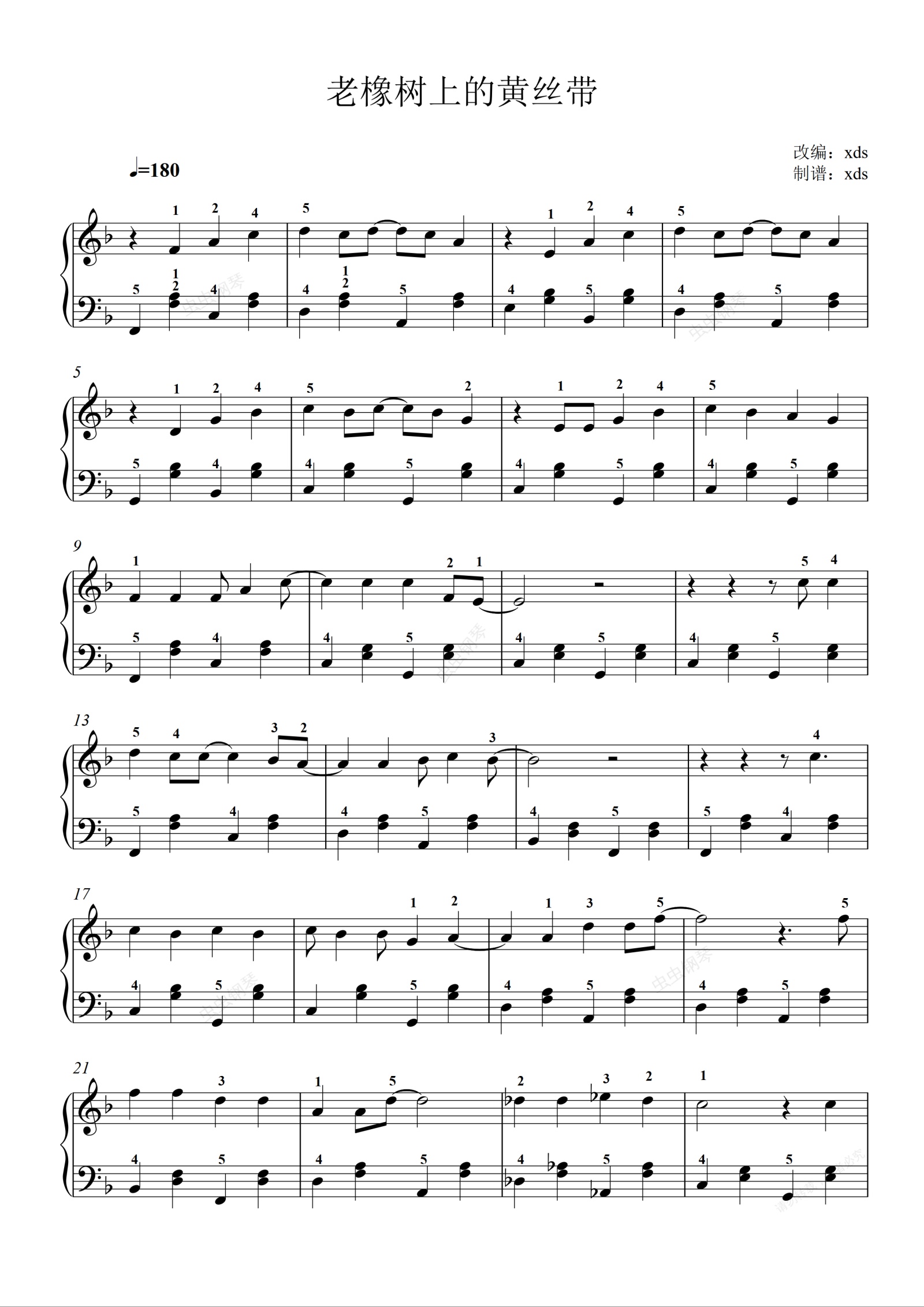 钢琴谱:老橡树上的黄丝带