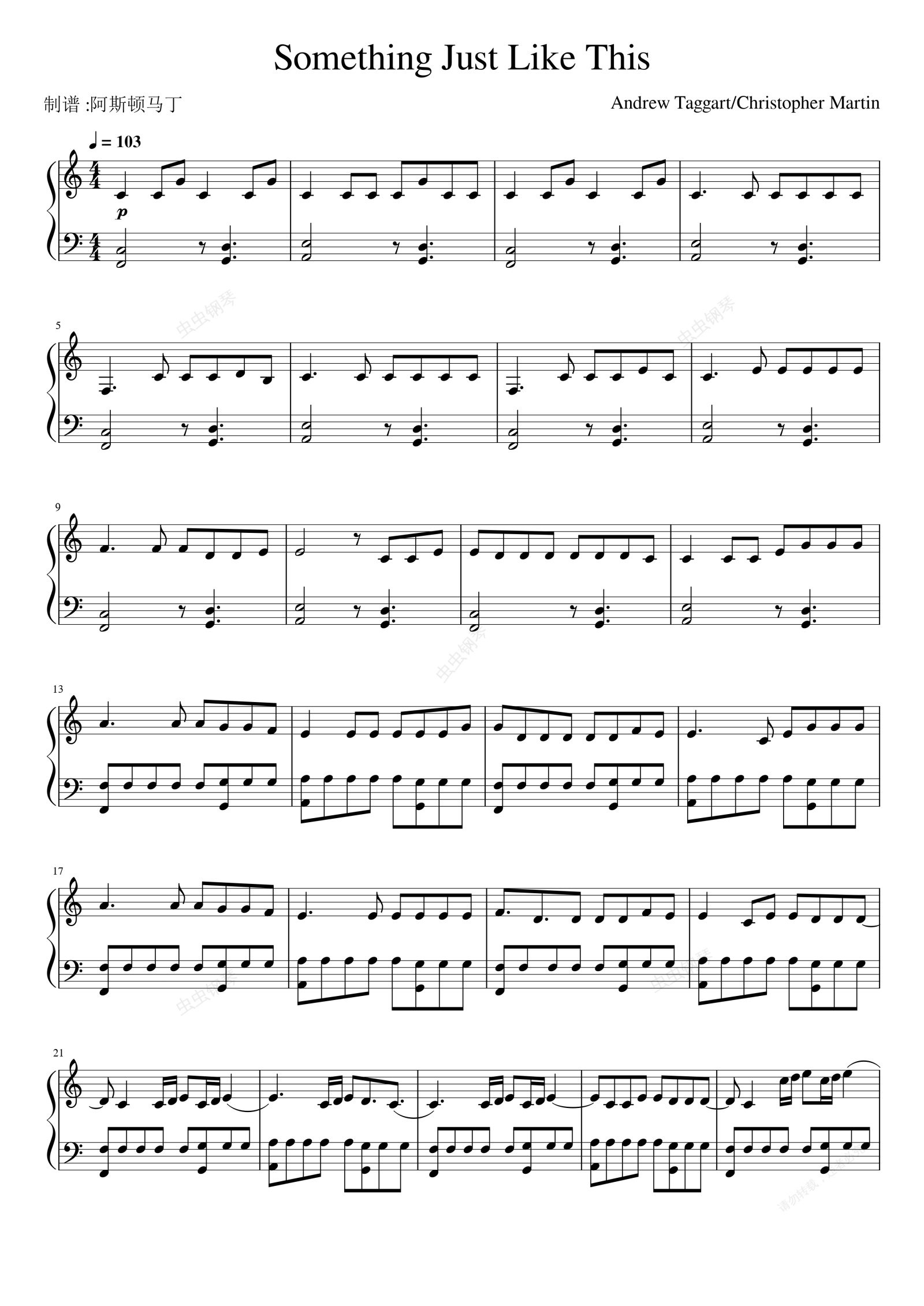 钢琴谱:Something Just Like This-简易钢琴C调版