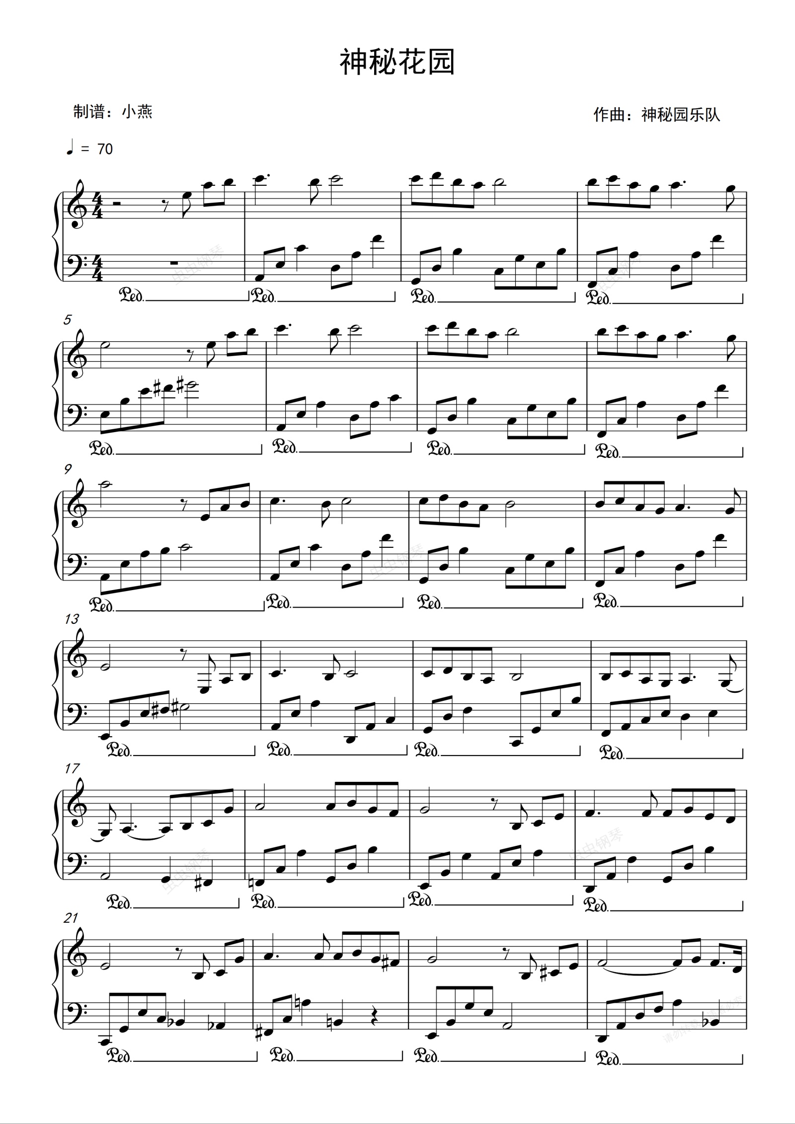 钢琴谱:神秘花园/Songs From A Secret Garden(简易版)