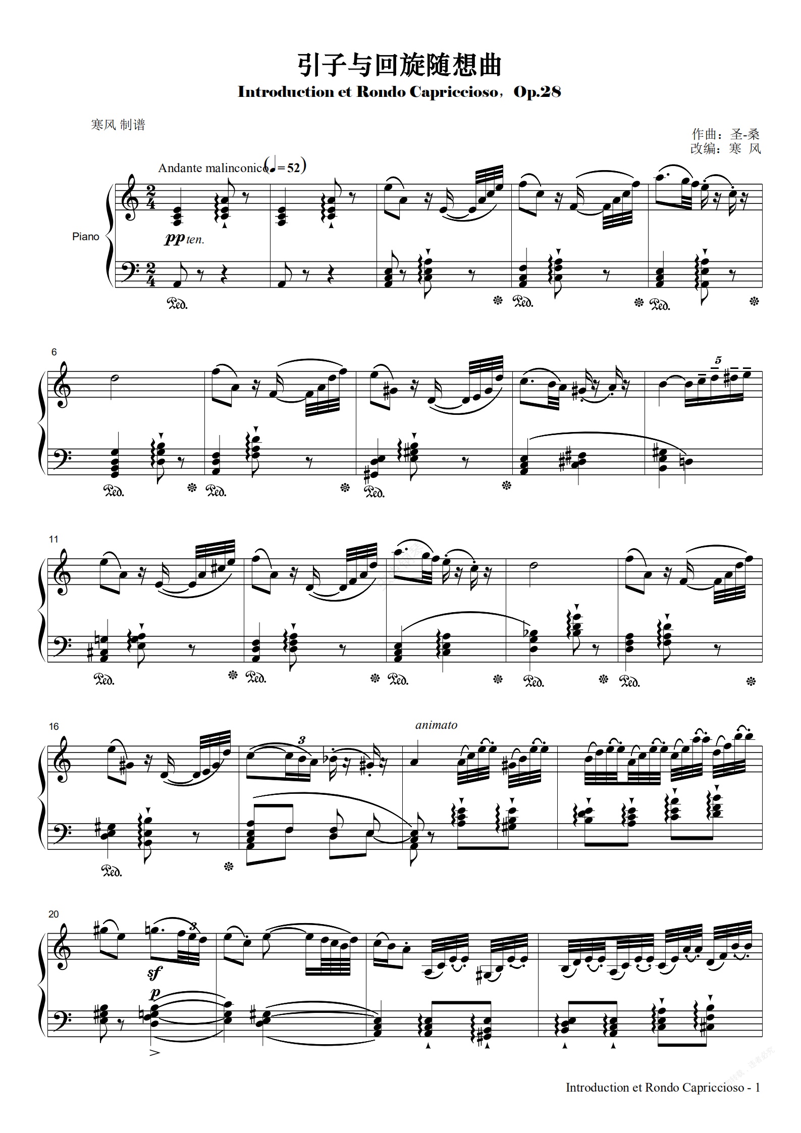 钢琴谱:圣•桑-引子与回旋随想曲钢琴独奏