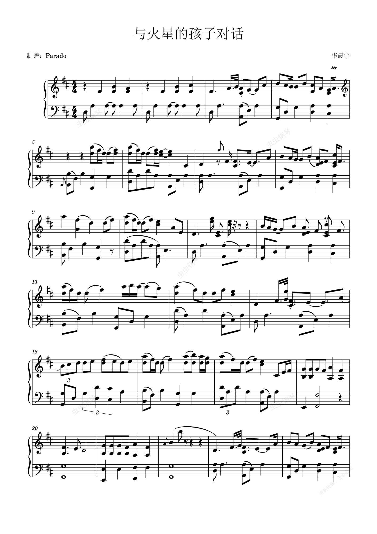 钢琴谱:与火星的孩子对话 - 华晨宇