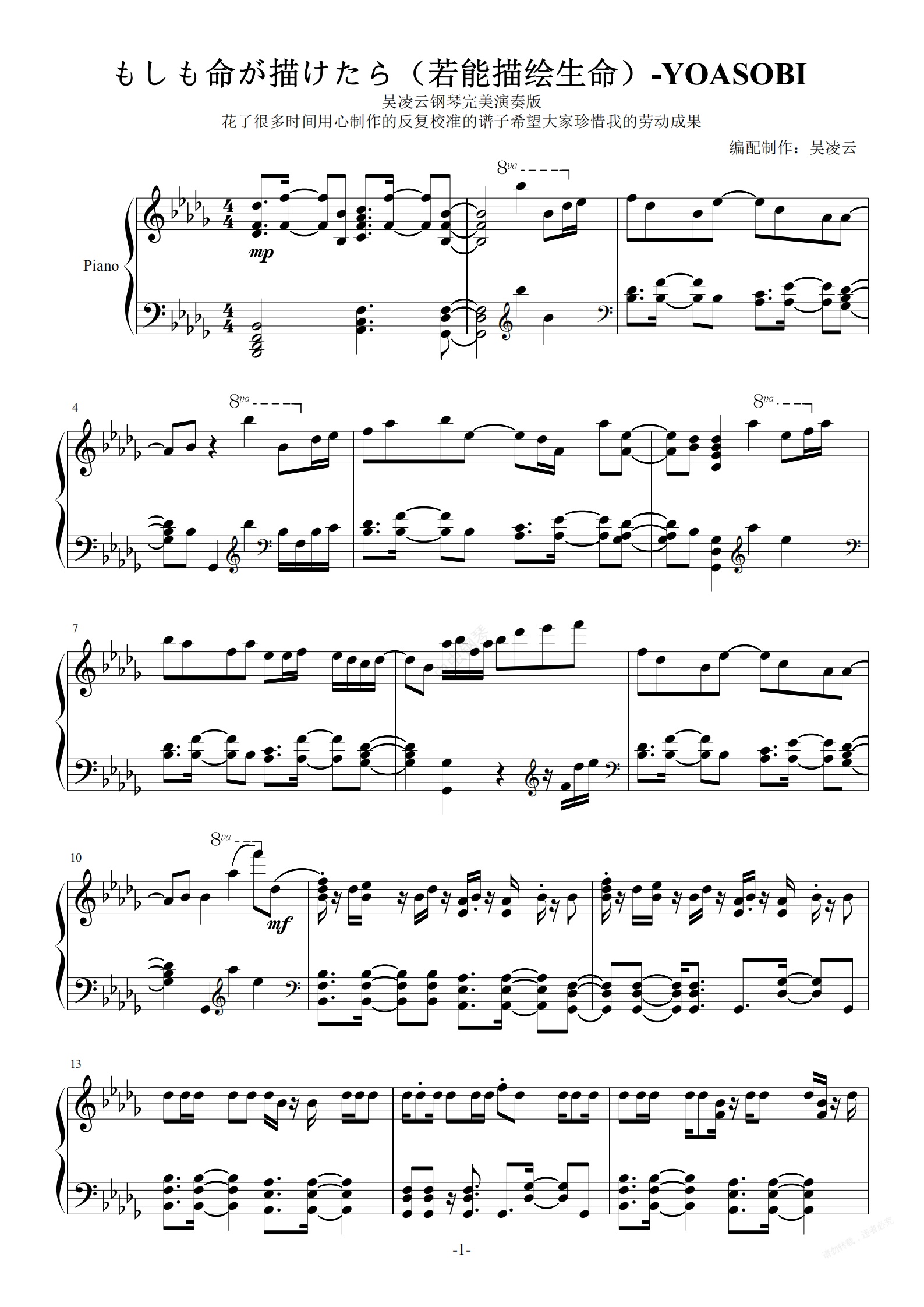 钢琴谱:もしも命が描けたら(若能描绘生命)-YOASOBI  吴凌云钢琴完美演奏版