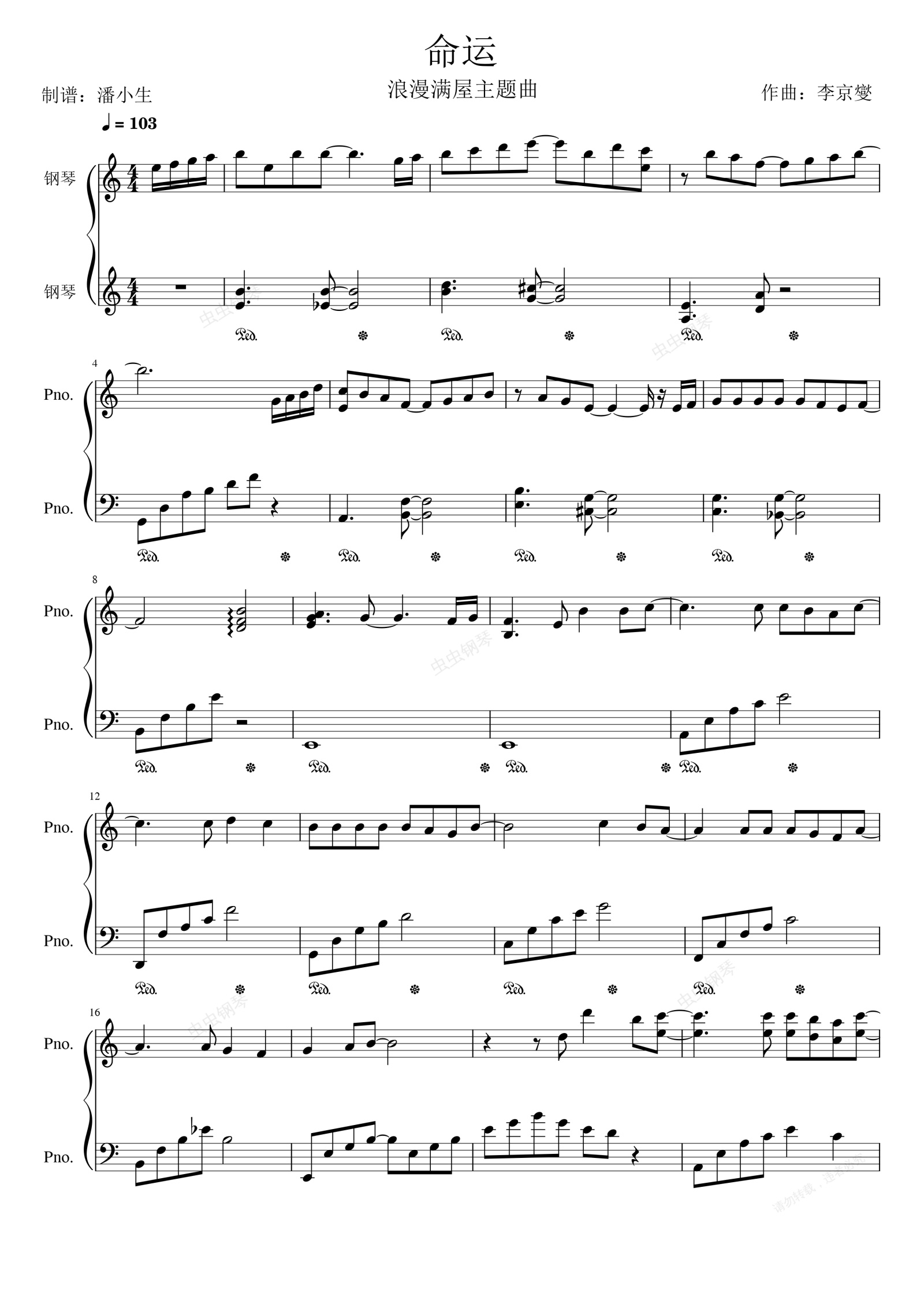 钢琴谱:命运 浪漫满屋主题曲 钢琴谱