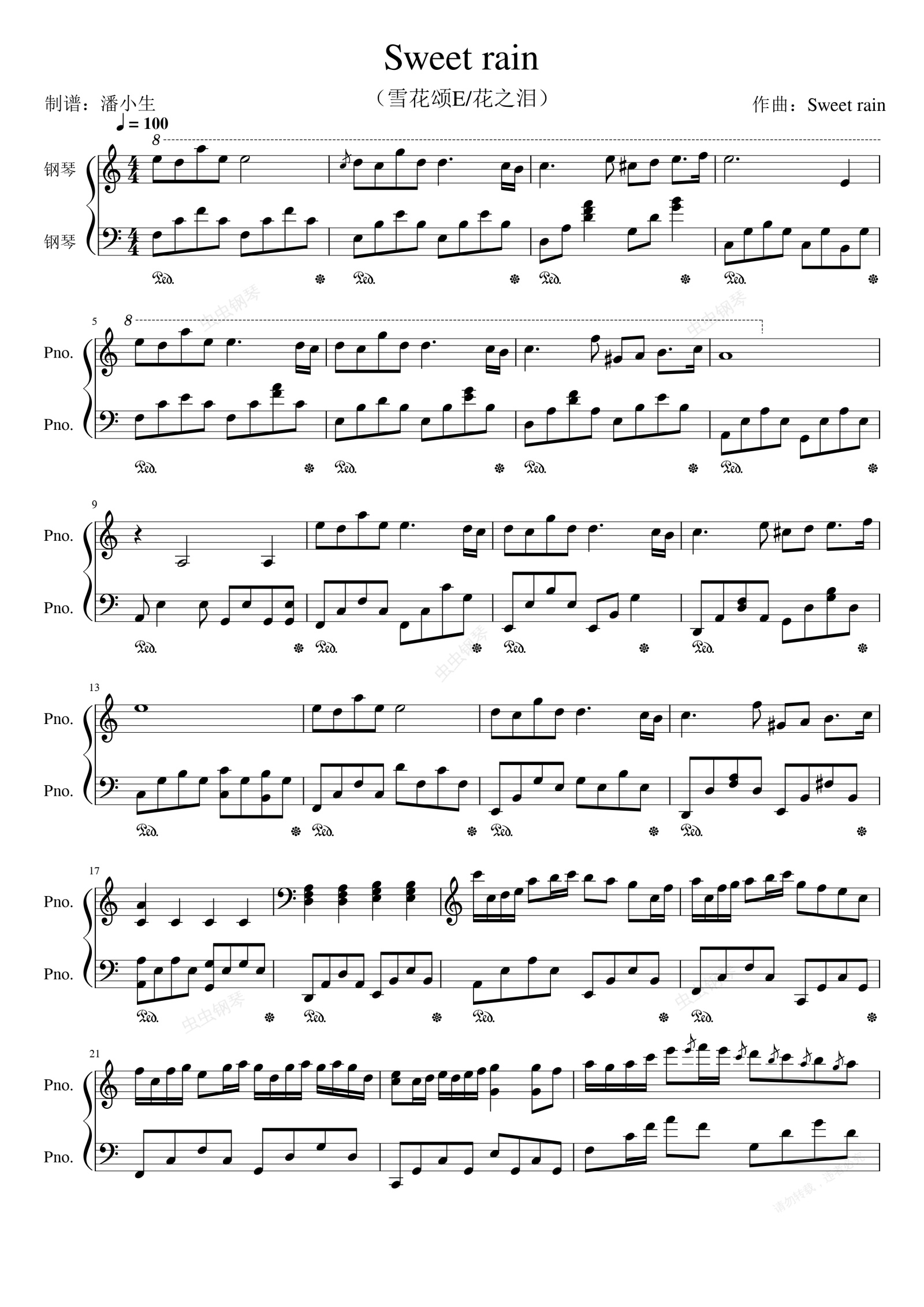 钢琴谱:Sweet rain 雪花颂E 花之泪 Danbi 钢琴谱