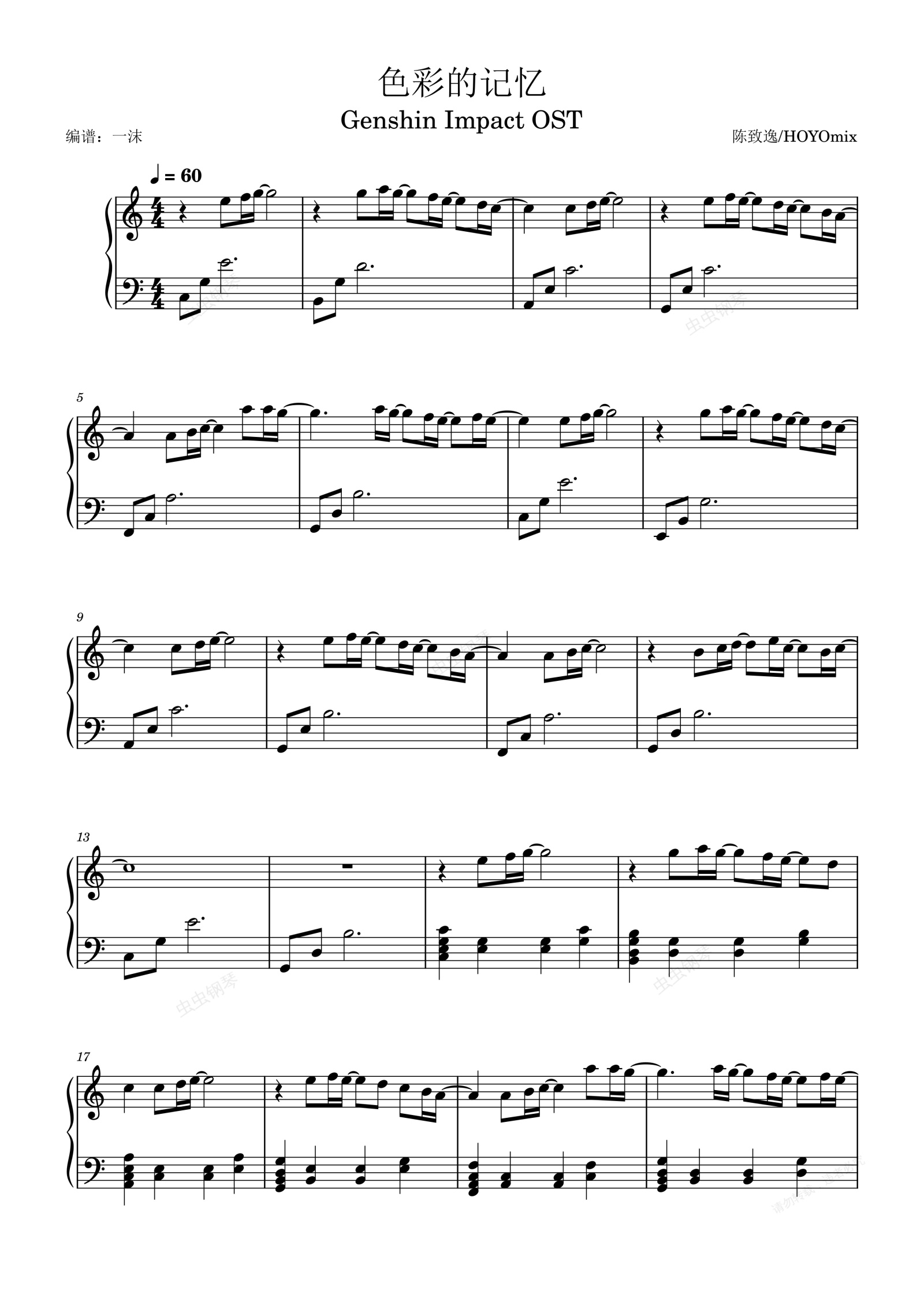 钢琴谱:原神-色彩的记忆 钢琴独奏