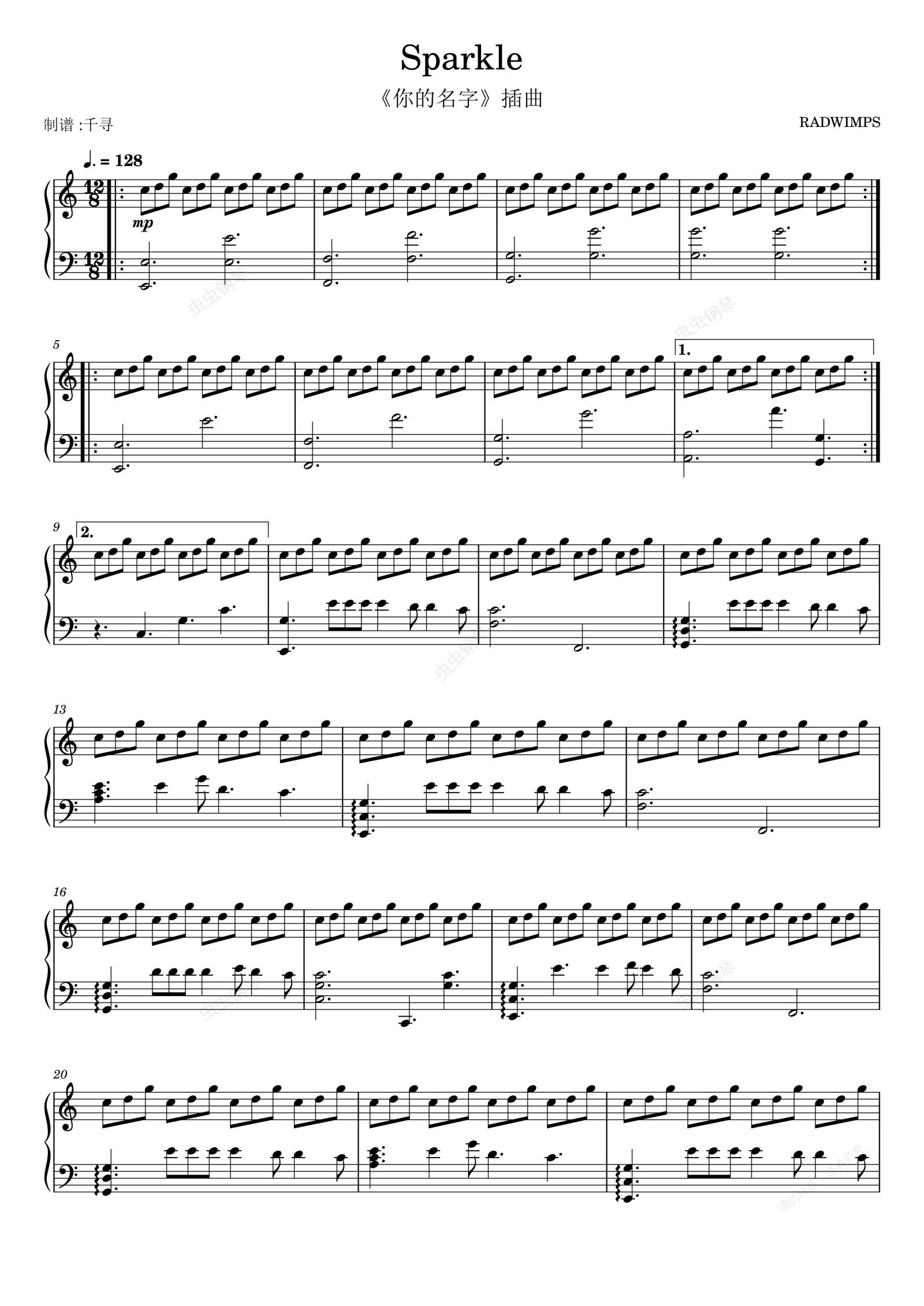 钢琴谱:你的名字-火花 Sparkle/スパークル-钢琴独奏版