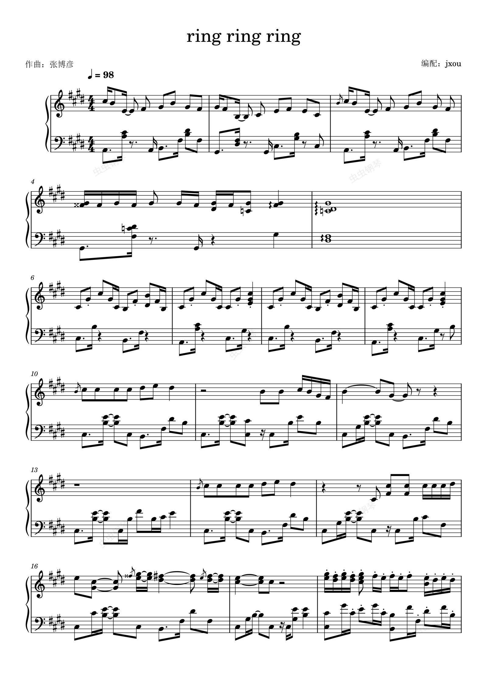 钢琴谱:Ring Ring Ring 完美还原版