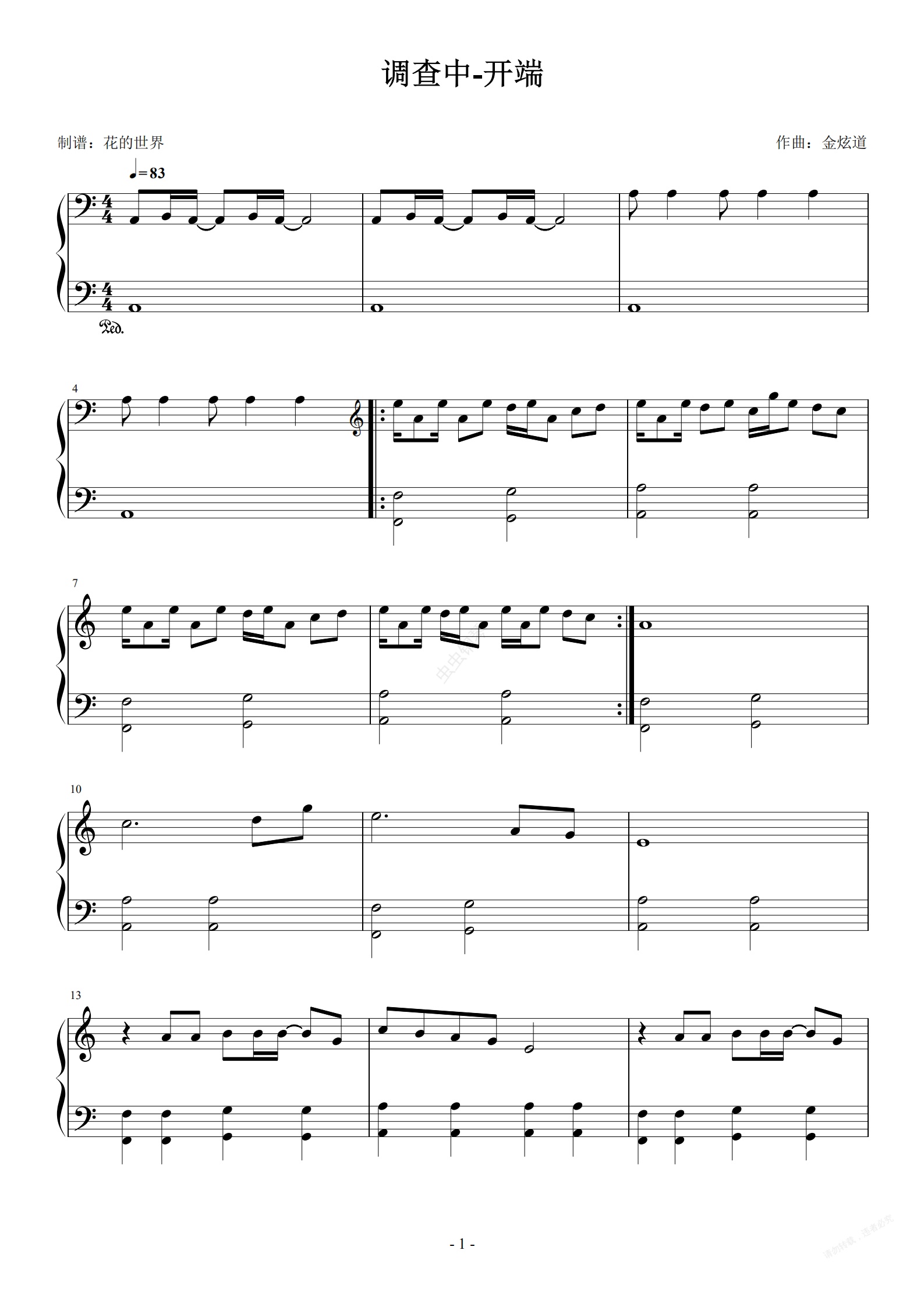 钢琴谱:调查中 开端 C调简单版 金炫道