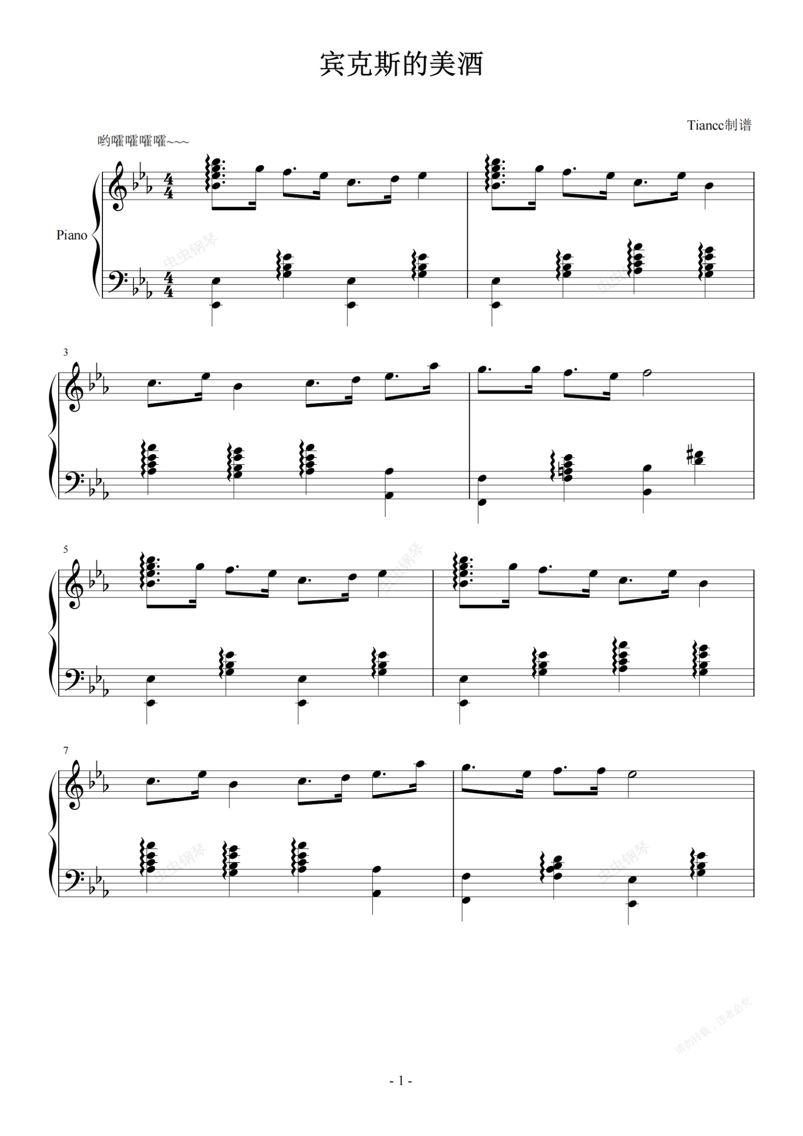 钢琴谱:《宾克斯的美酒/ビンクスの酒(节选)》海迷经典,弹一段就很爽了~
