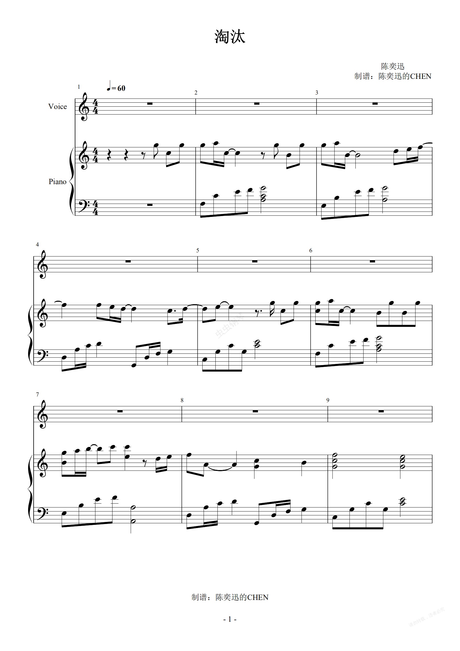 钢琴谱:淘汰 C掉完美弹唱谱 【附歌词】