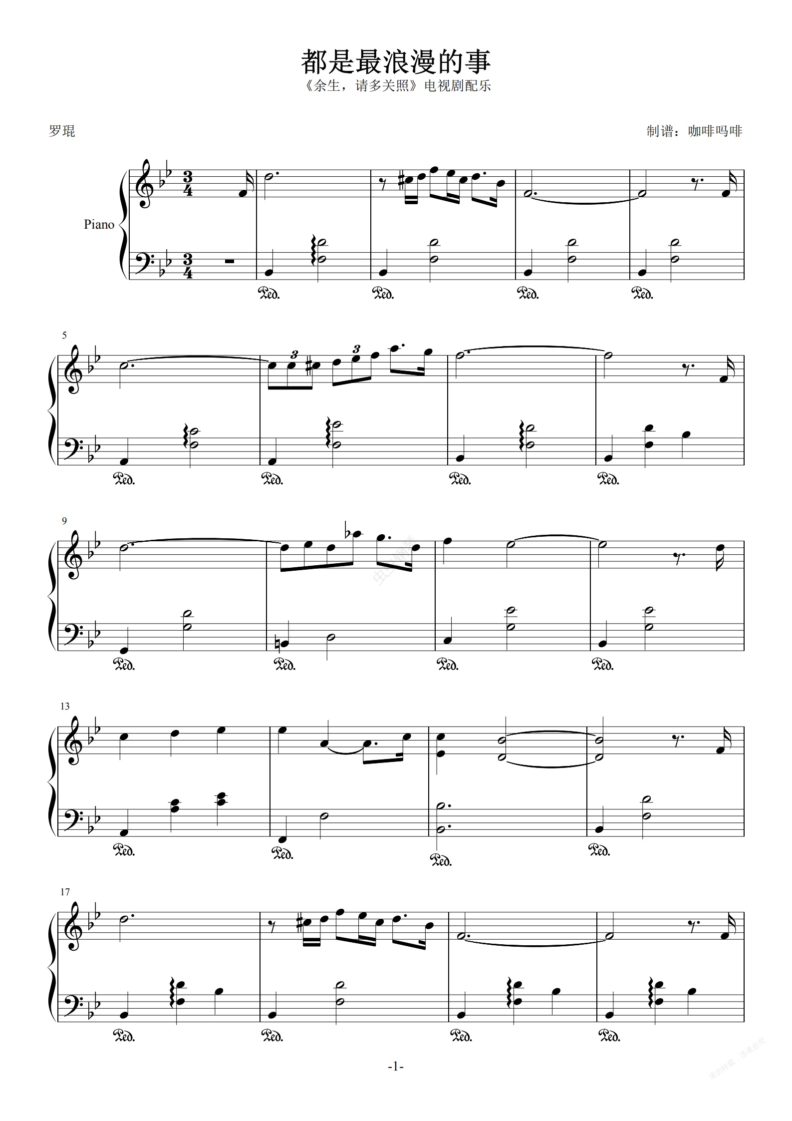 钢琴谱:都是最浪漫的事-《余生,请多指教》电视剧配乐 钢琴谱
