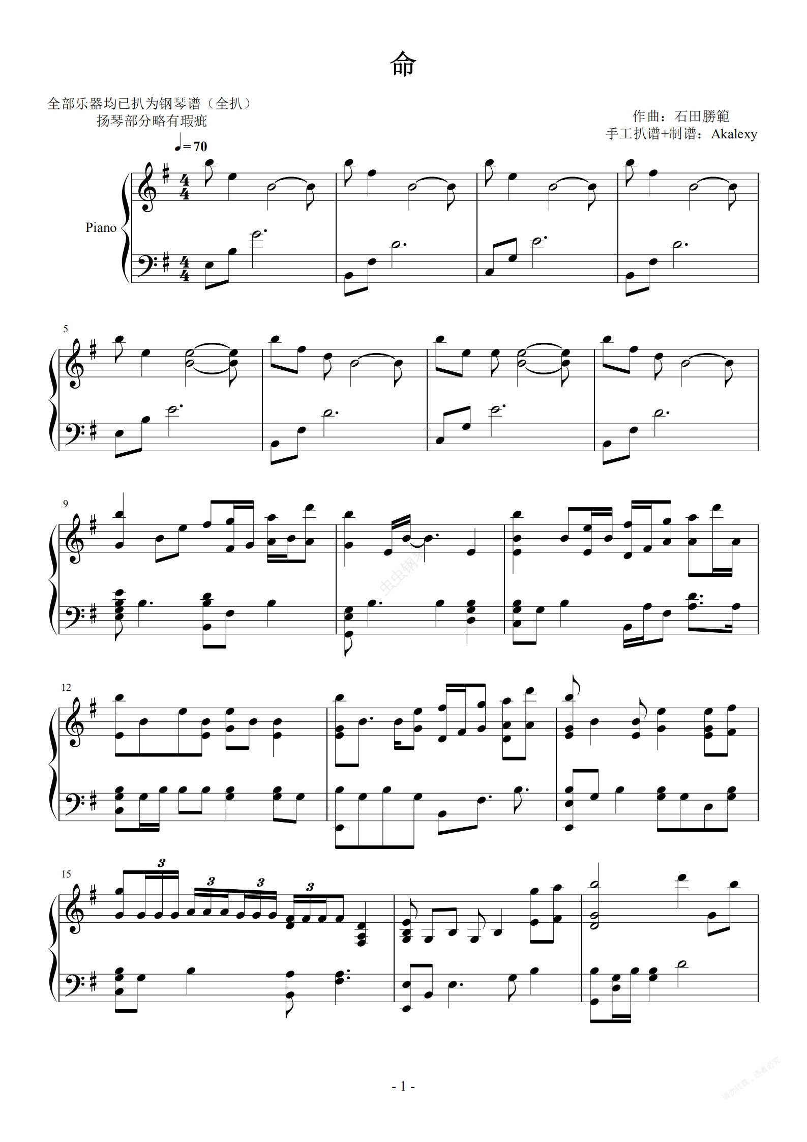 钢琴谱:大奥《命》
