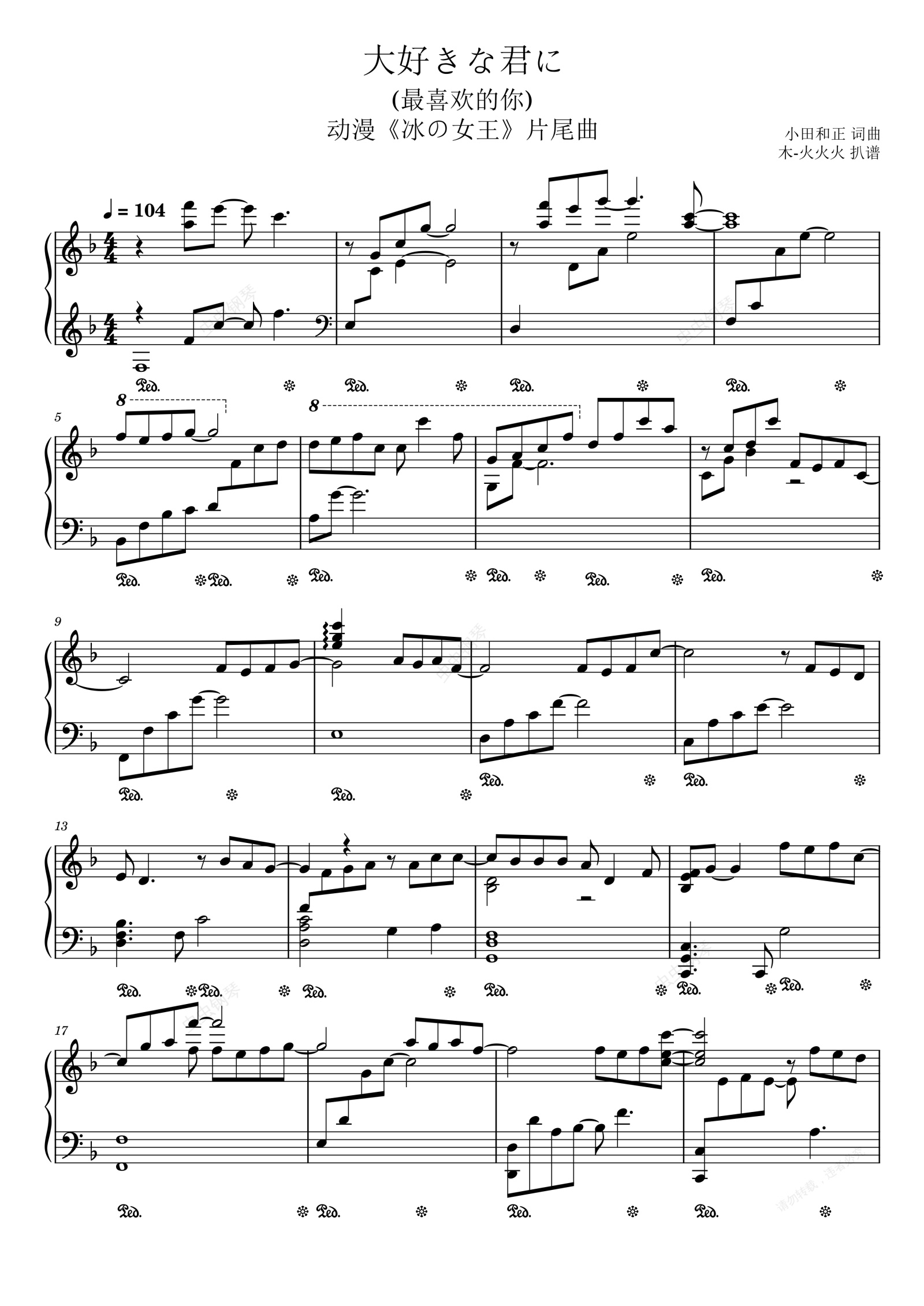 钢琴谱:小田和正-大好きな君に(最喜欢的你)《雪の女王》片尾曲-原声扒带