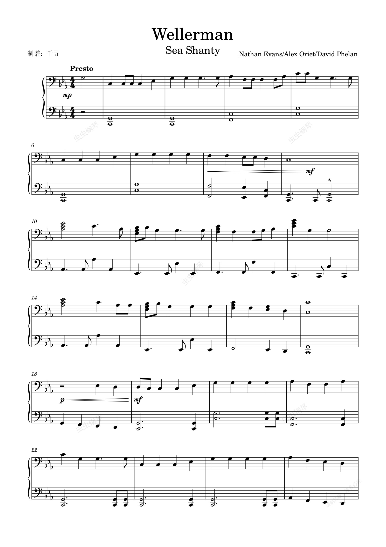 钢琴谱:Wellerman(Sea Shanty)