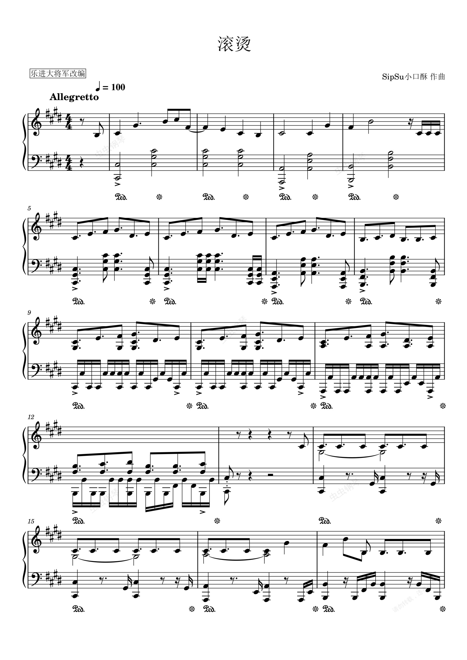 钢琴谱:SipSu小口酥《滚烫 》钢琴独奏