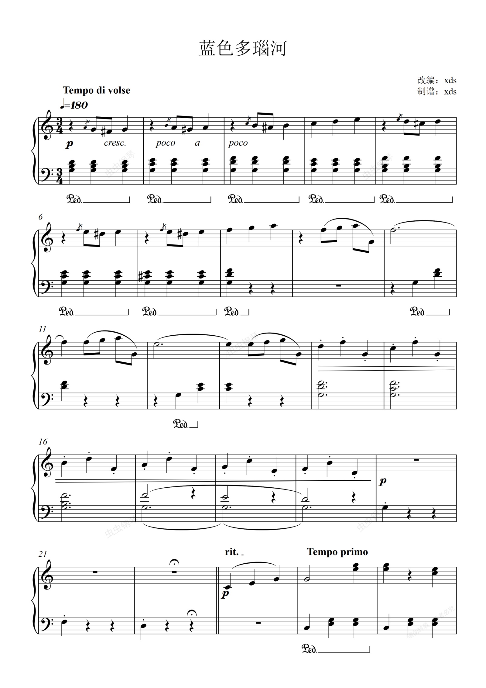 钢琴谱:蓝色多瑙河
