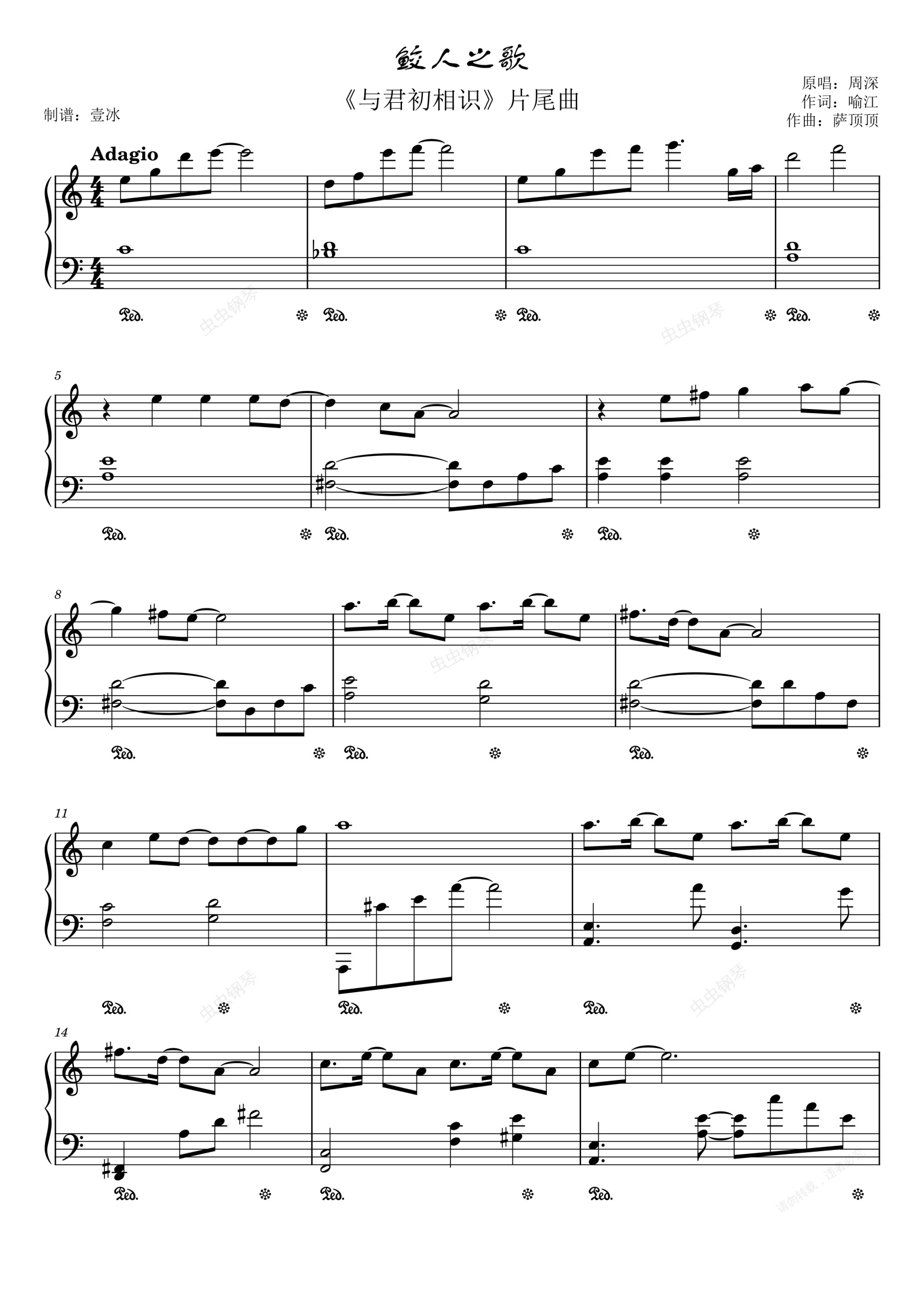 钢琴谱:鲛人之歌//《与君初相识》片尾曲-原调版
