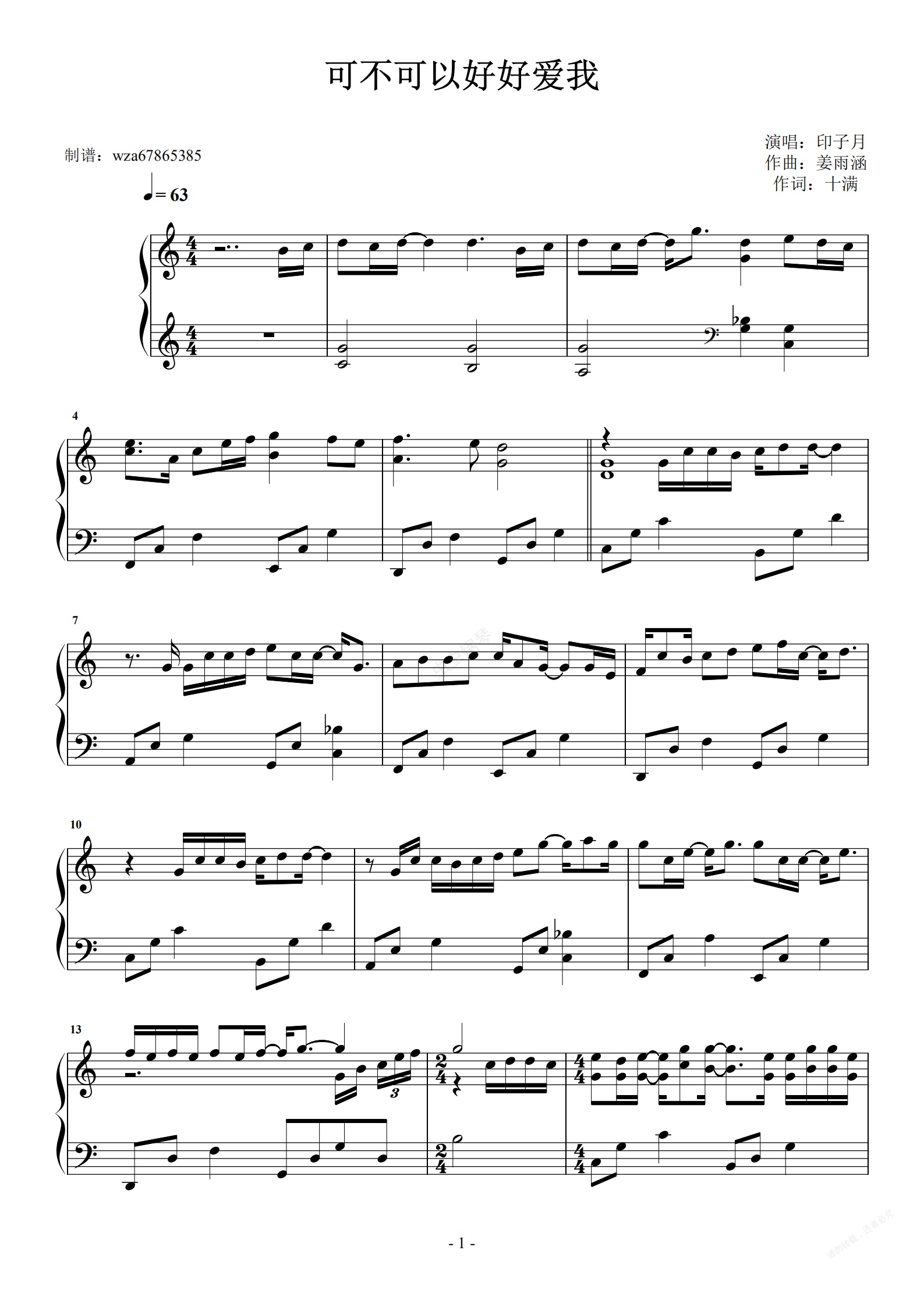 钢琴谱:可不可以好好爱我