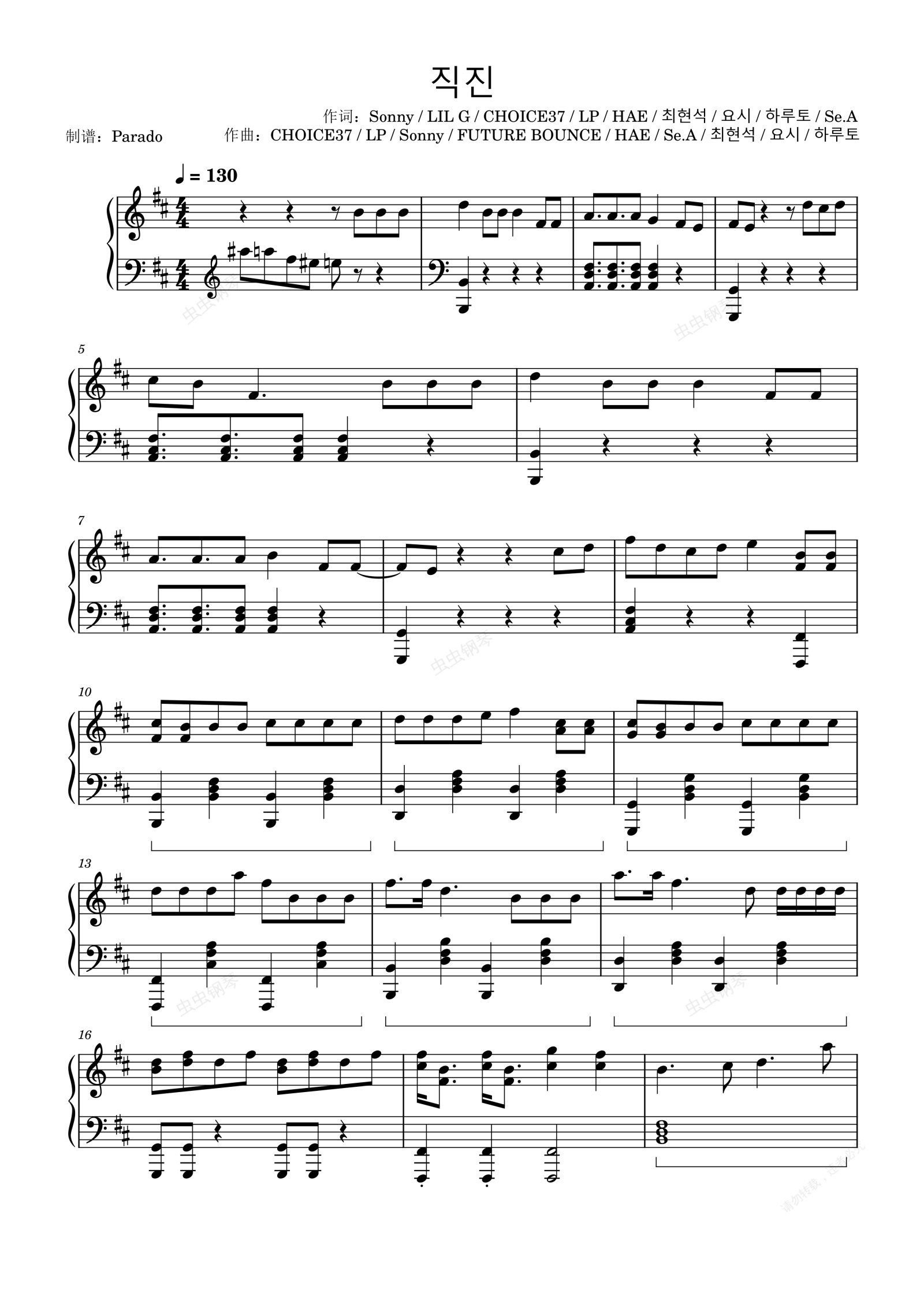 钢琴谱:【极限还原】직진 - TREASURE