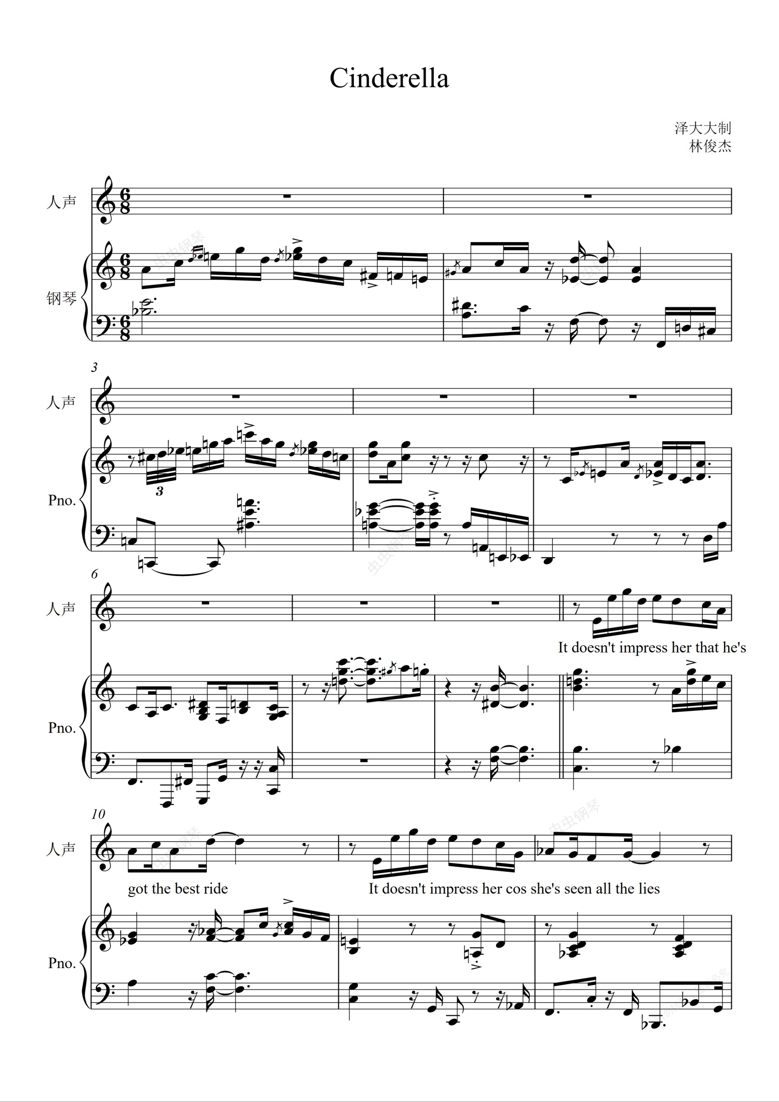钢琴谱:Cinderella【完美弹唱附词】泽大大 林俊杰
