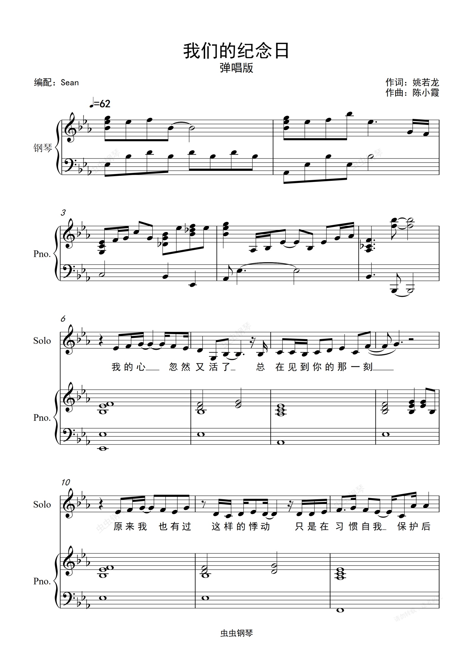 钢琴谱:我们的纪念日-弹唱版