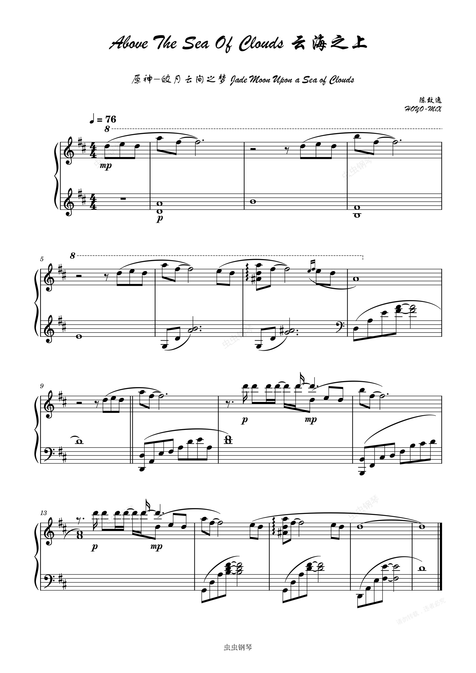 钢琴谱:Above The Sea Of Clouds 云海之上《原神-皎月云间之梦 Jade Moon Upon a Sea of Clouds》