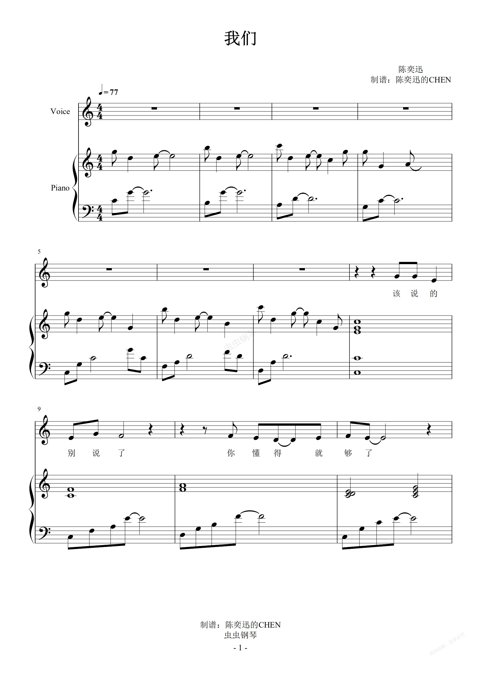 钢琴谱:我们 C调完美弹唱谱 【附歌词】