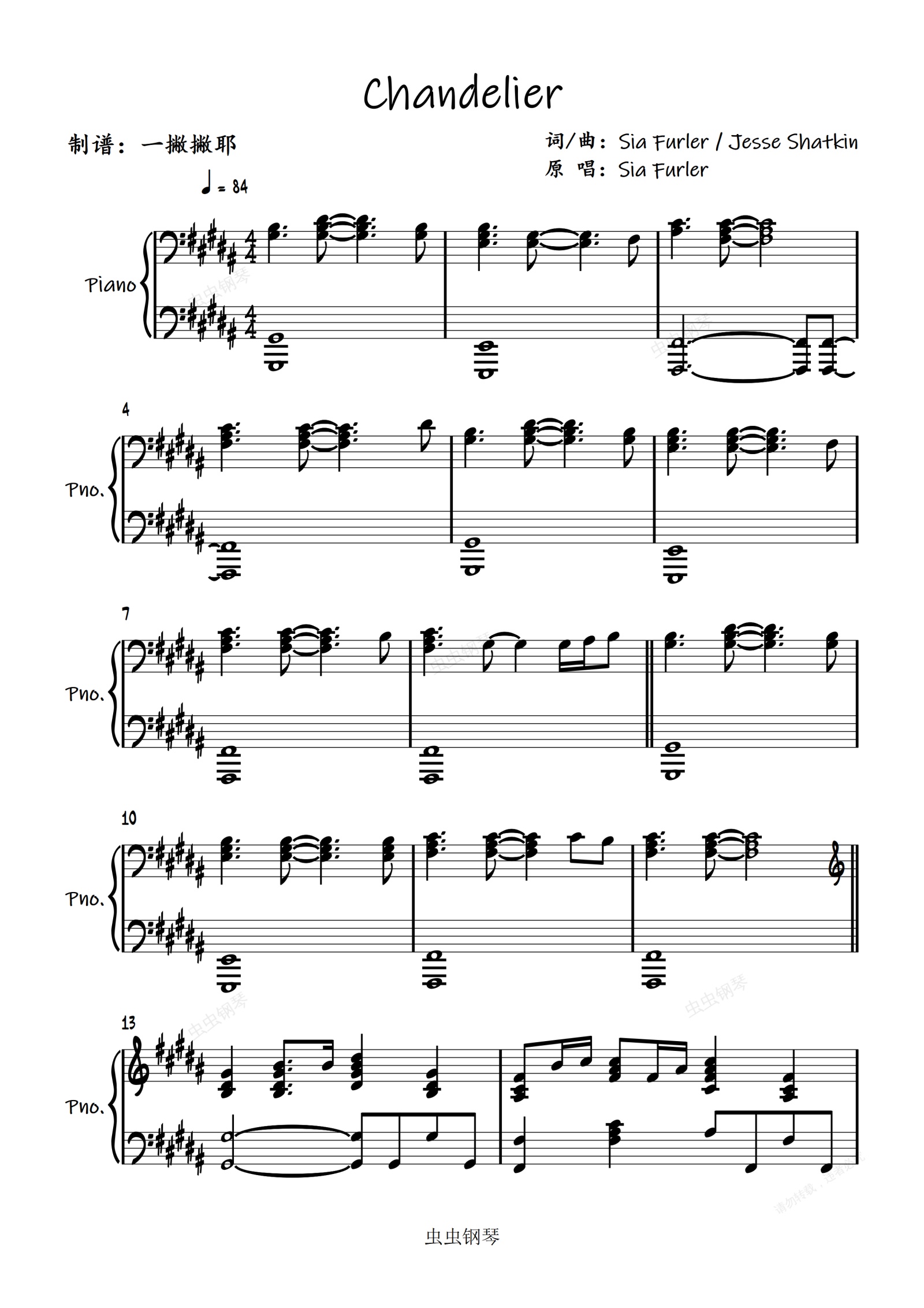 钢琴谱:Chandelier【麦姐版弹唱】Sia「一撇撇耶」