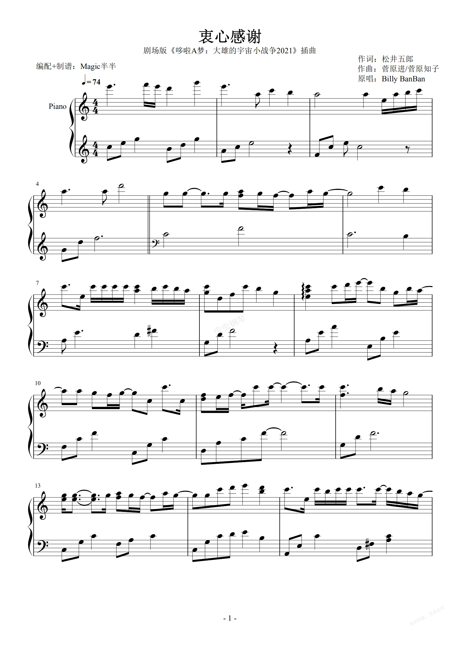 钢琴谱:衷心感谢 <哆啦A梦:大雄的宇宙小战争2021>插曲