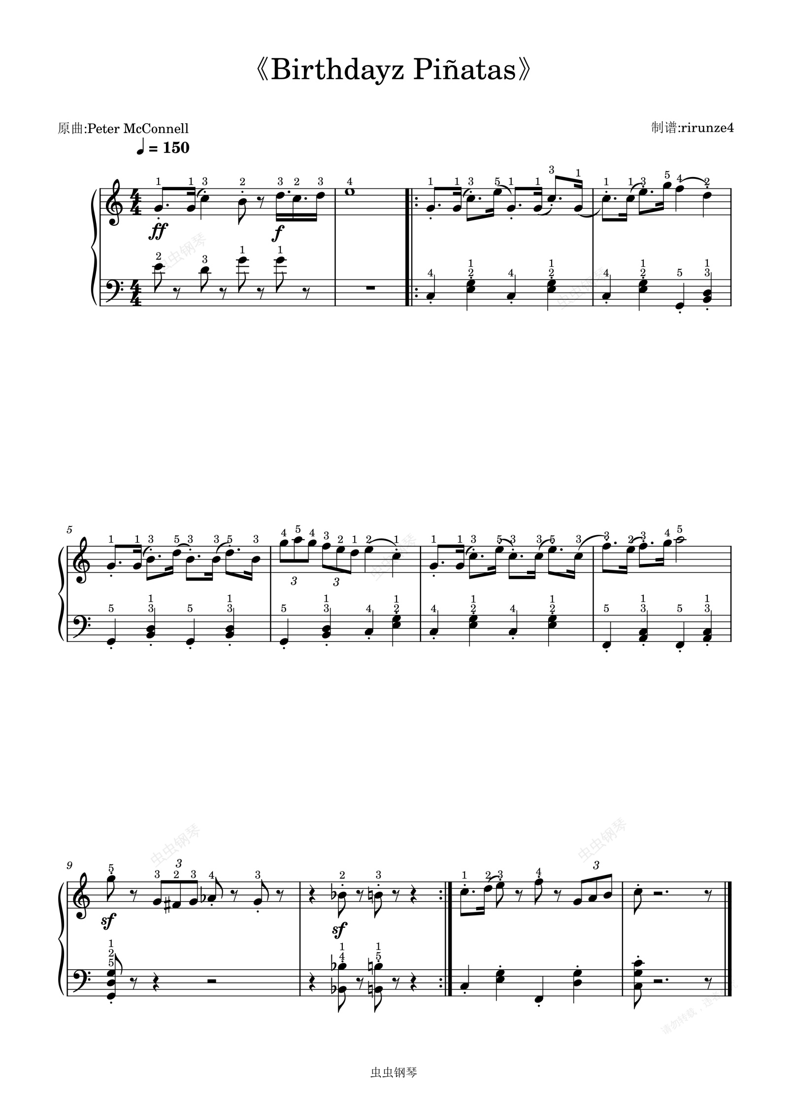 钢琴谱:植物大战僵尸-周年庆(Birthdayz Piñatas)【独奏钢琴谱】
