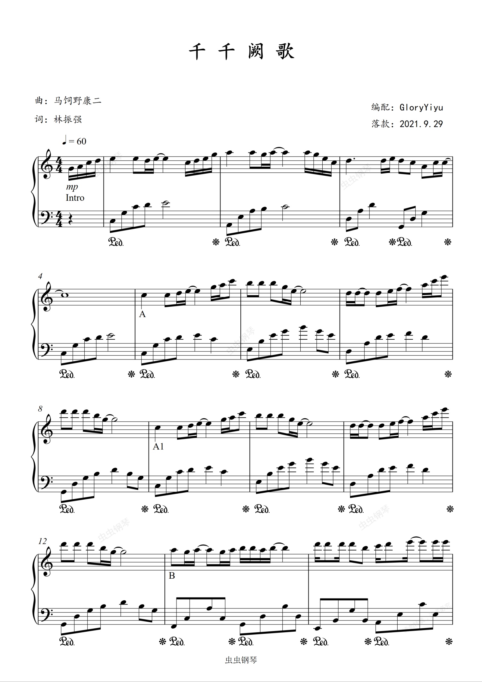 钢琴谱:千千阙歌 C调简版(编配:一羽之荣)