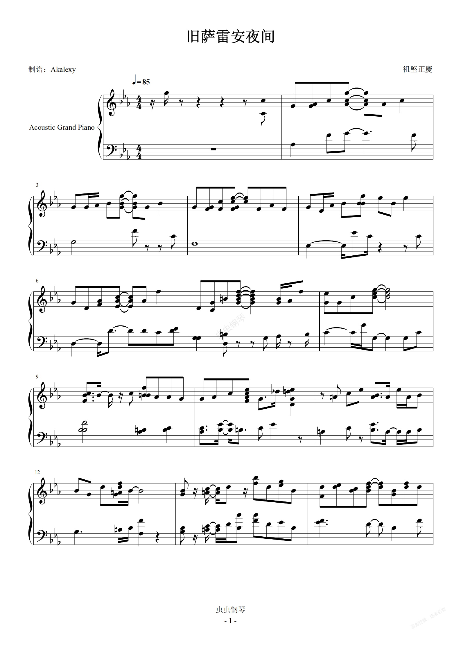 钢琴谱:最终幻想14《旧萨雷安夜间》