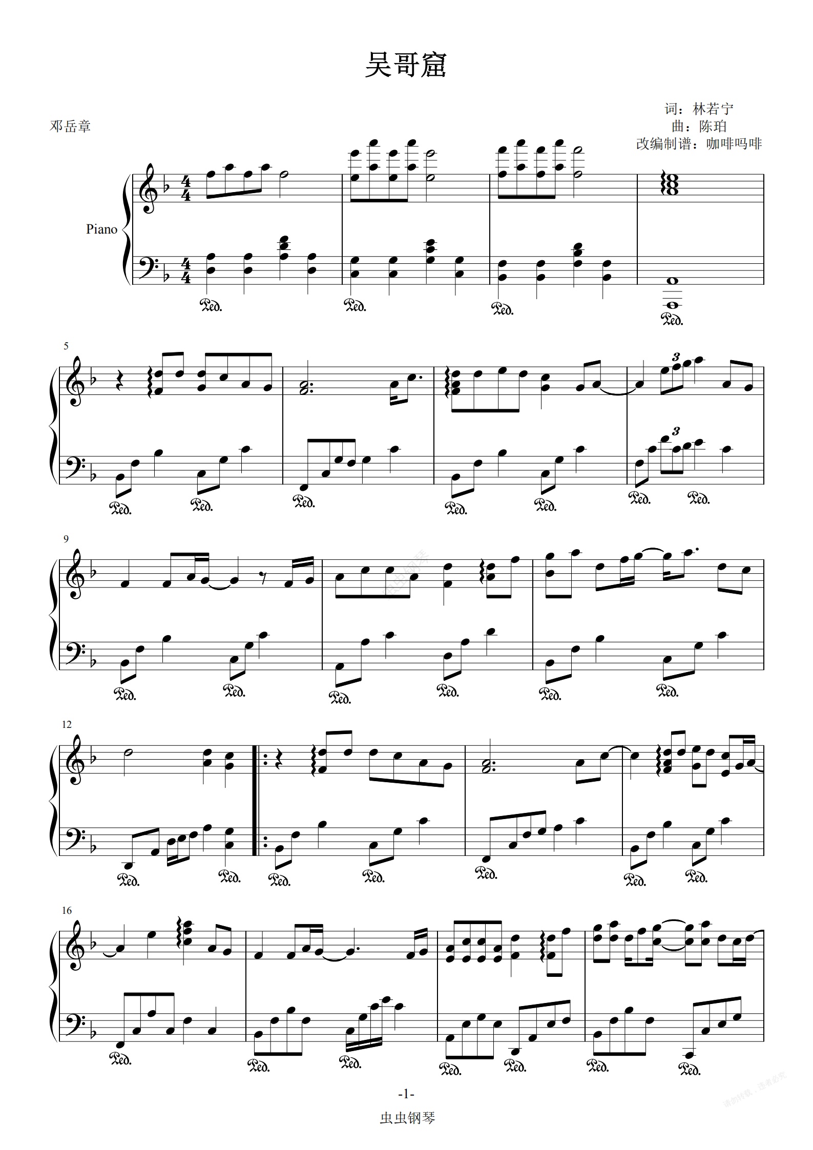 钢琴谱:吴哥窟-邓岳章 F调精编钢琴独奏谱