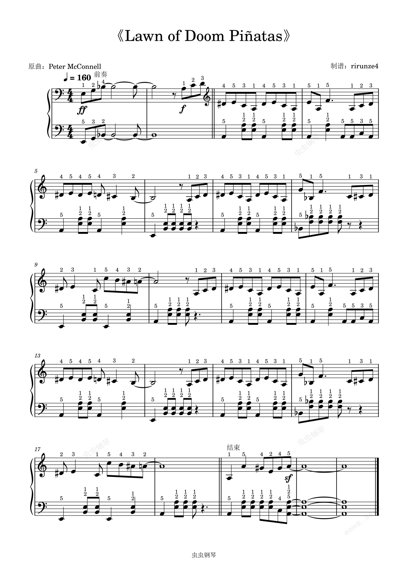 钢琴谱:植物大战僵尸2-万圣节(Lawn of Doom Piñatas)【独奏钢琴谱】