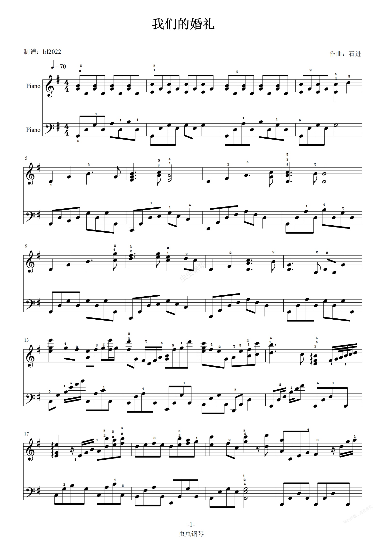 钢琴谱:我们的婚礼-石进-夜的钢琴曲Ⅵ-指法标记-钢琴谱