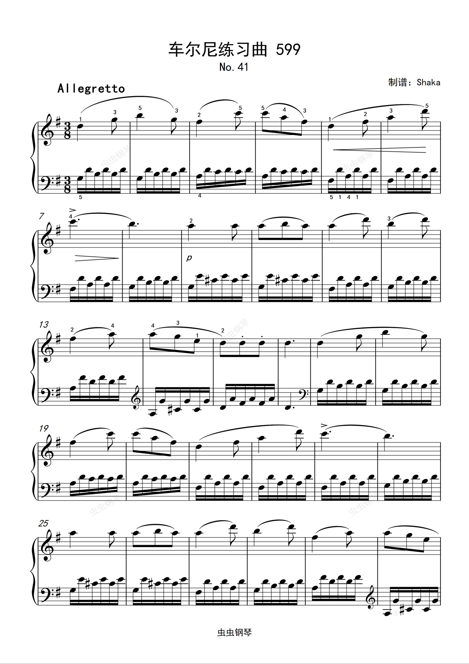 钢琴谱:车尔尼练习曲 599 No.41