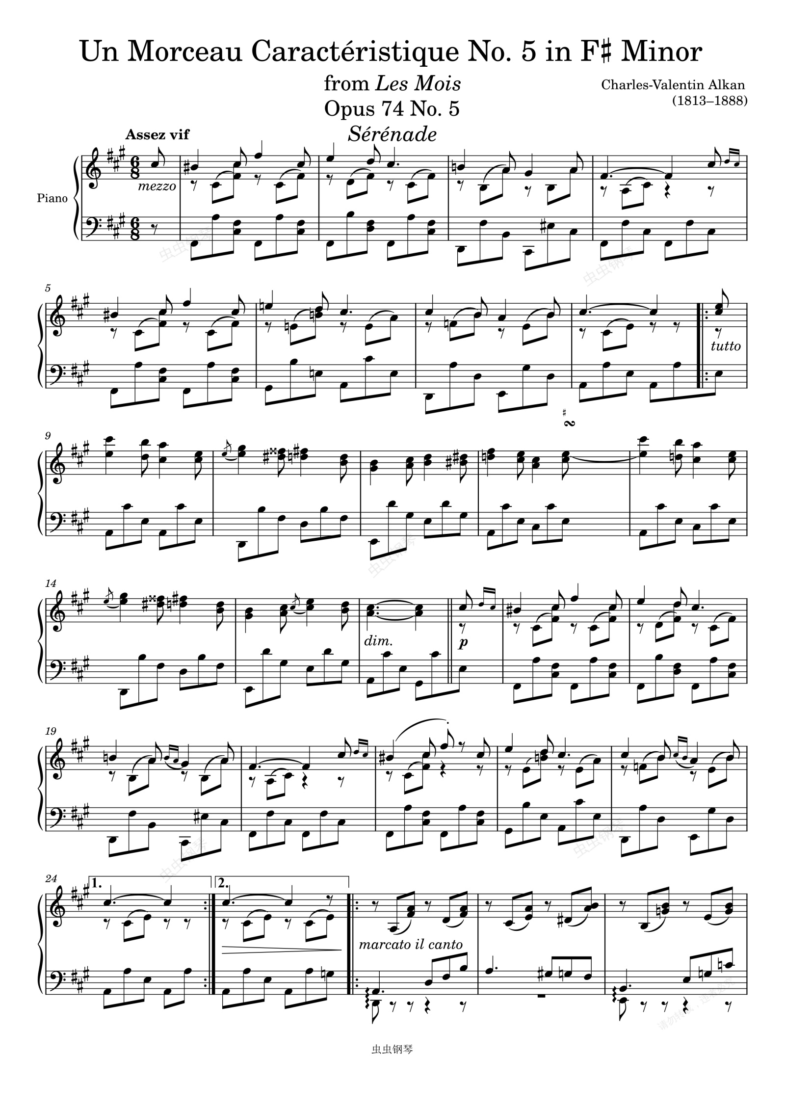 钢琴谱:Un Morceau Caractéristique Opus 74 No. 5 in F♯ Minor