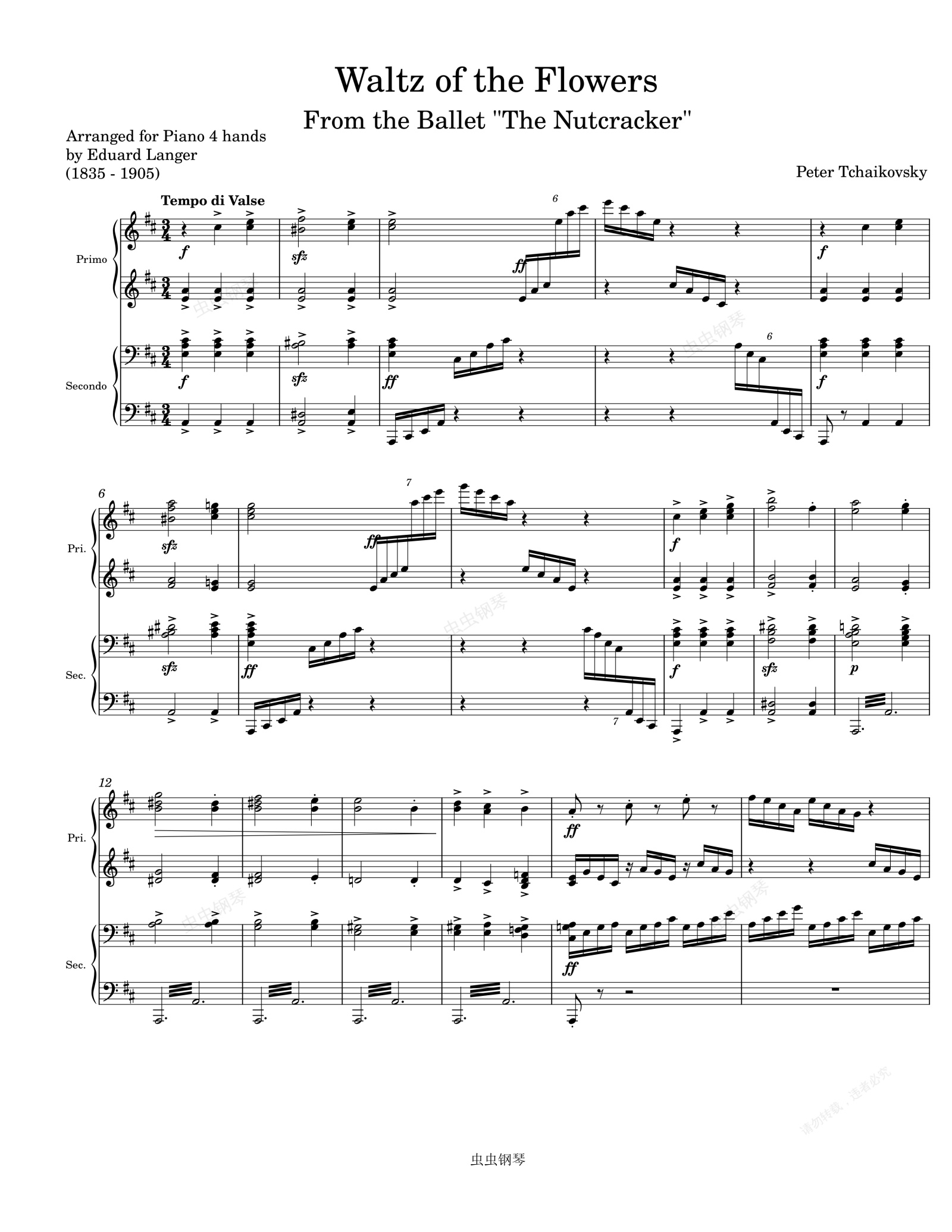 钢琴谱:花之圆舞曲 Tchaikovsky Waltz of the Flowers from The Nutcracker (Piano 4 hands)