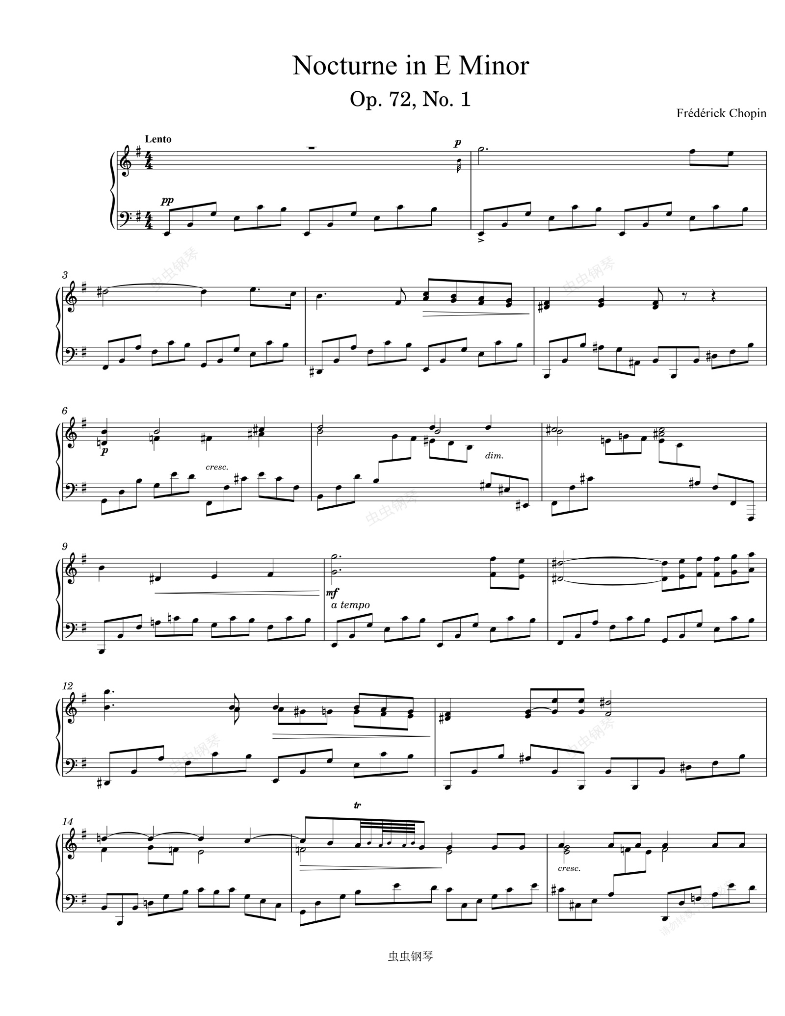 钢琴谱:肖邦e小调夜曲 Chopin Nocturne in E Minor, Op. 72, No. 1