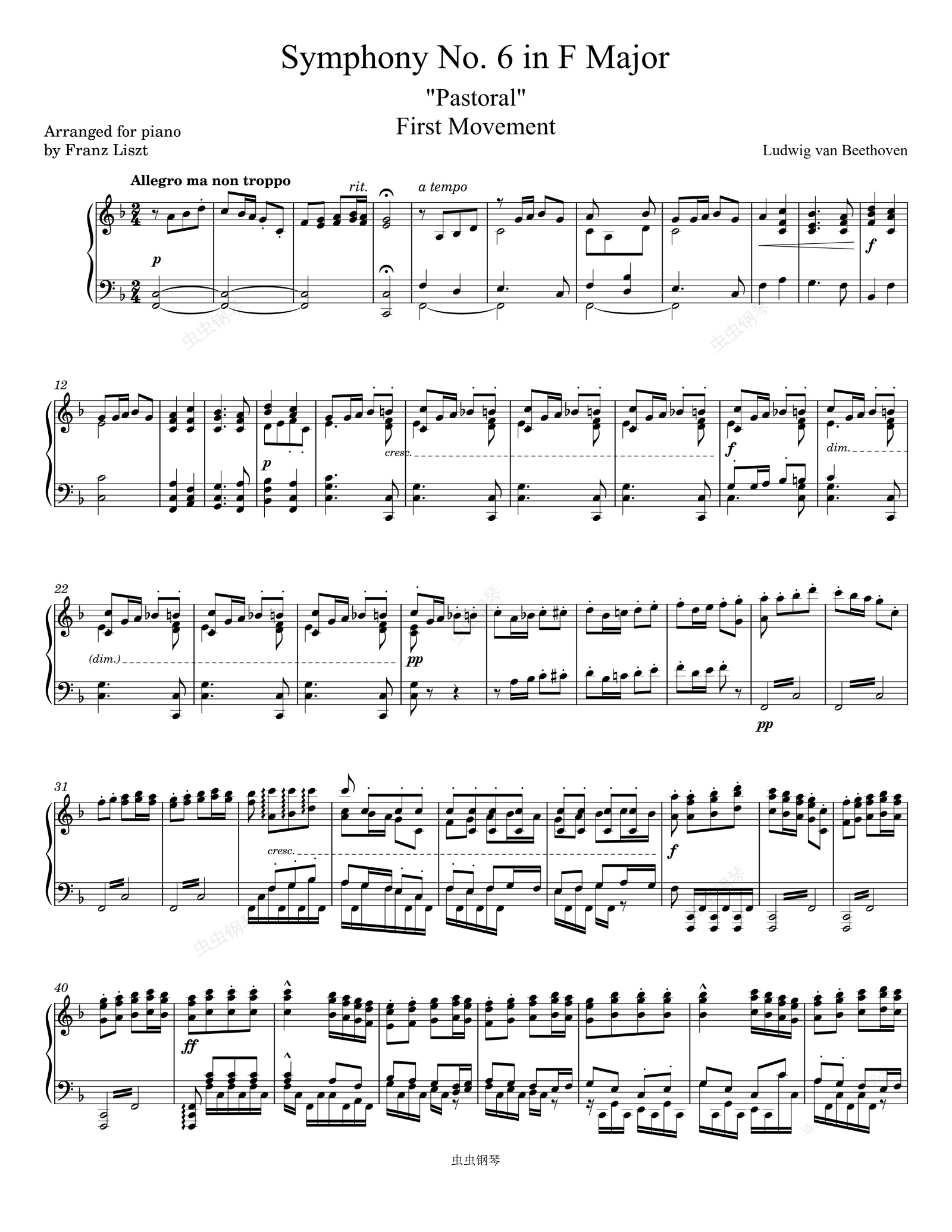 钢琴谱:Beethoven Symphony No. 6 Pastoral (1st movement) Piano solo