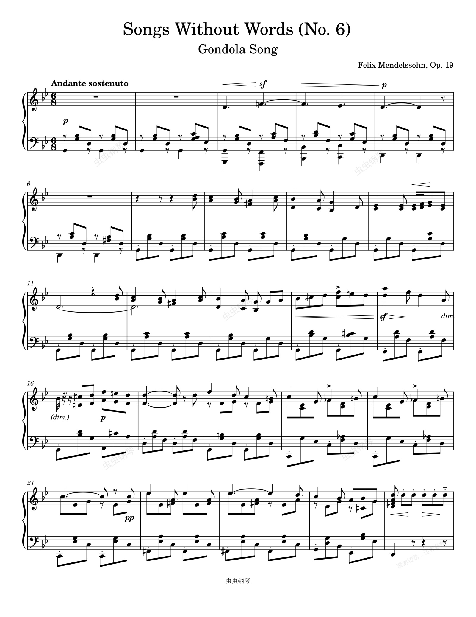 钢琴谱:Mendelsshon Songs Without Words (No. 6) Piano solo