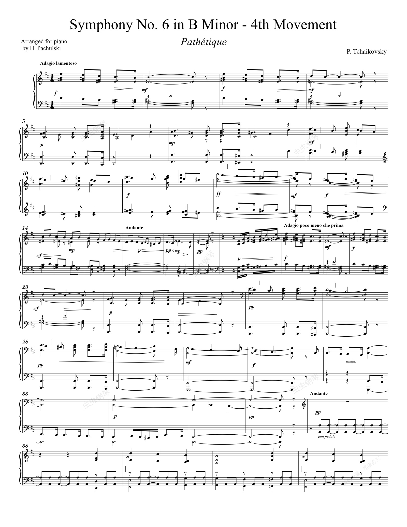 钢琴谱:Tchaikovsky Symphony No. 6, 4th Movement (Piano solo)