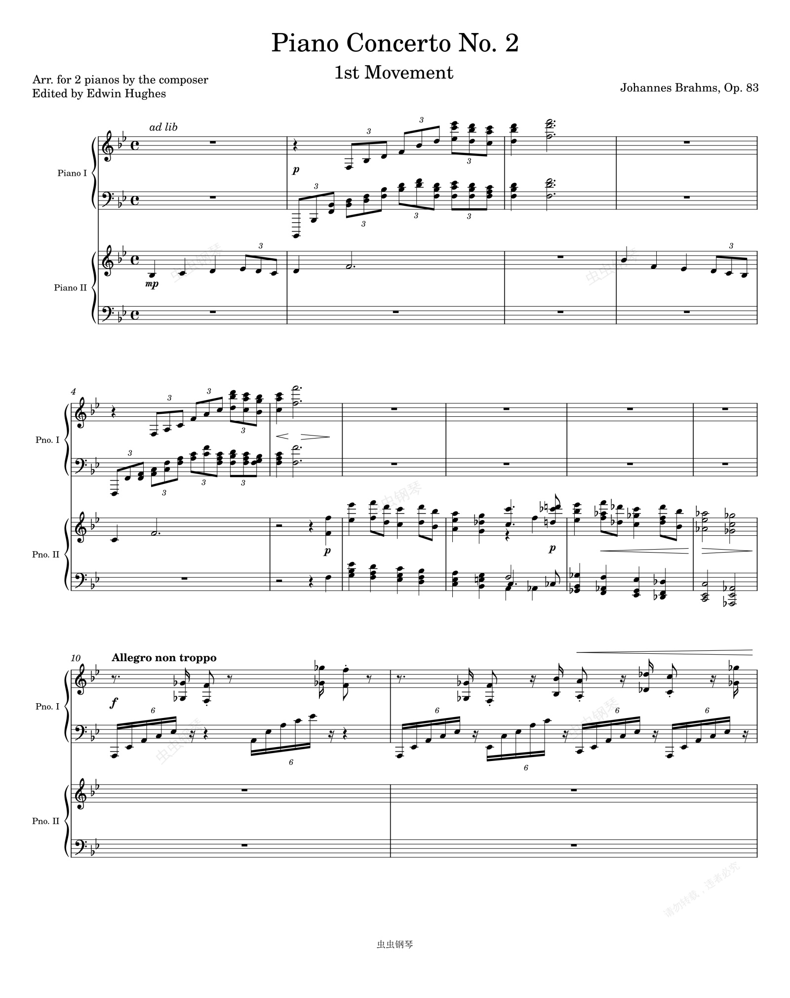 钢琴谱:Brahms Piano Concerto No. 2, 1st Movement (arr. for 2 pianos)
