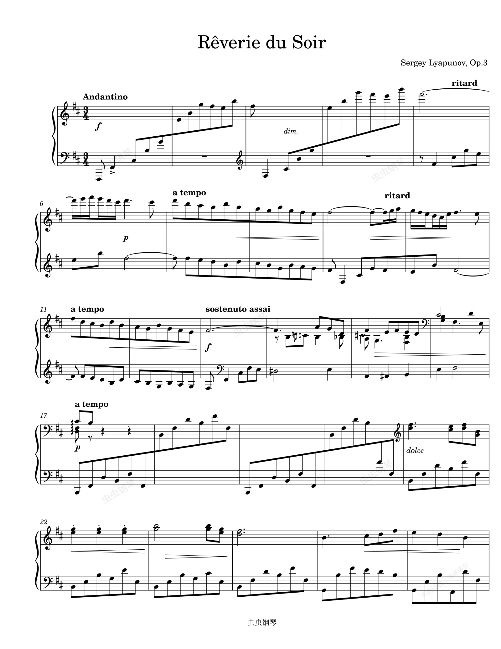 钢琴谱:Lyapunov Rêverie du soir, Op.3