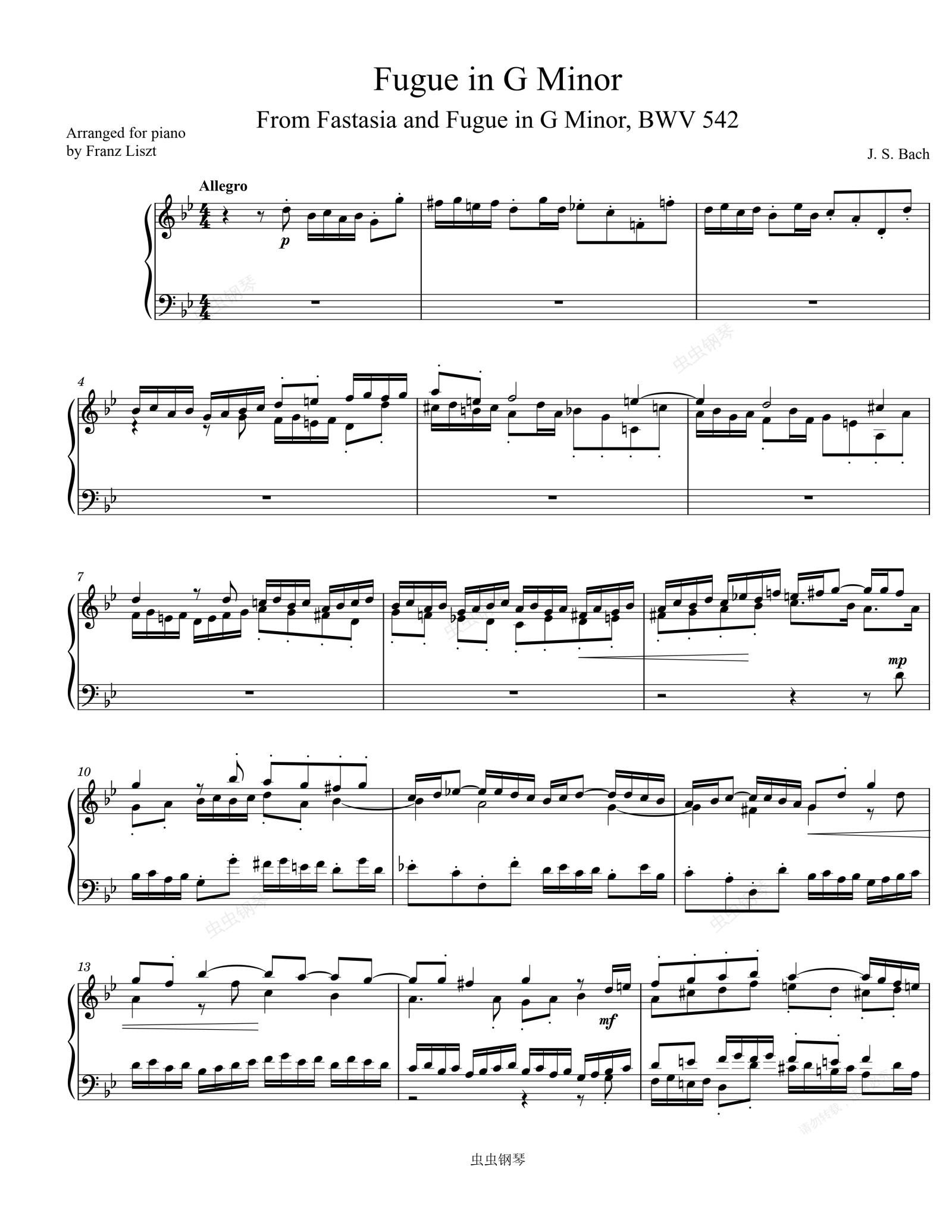 钢琴谱:Bach Fugue in G Minor, BWV 542 (Piano solo)