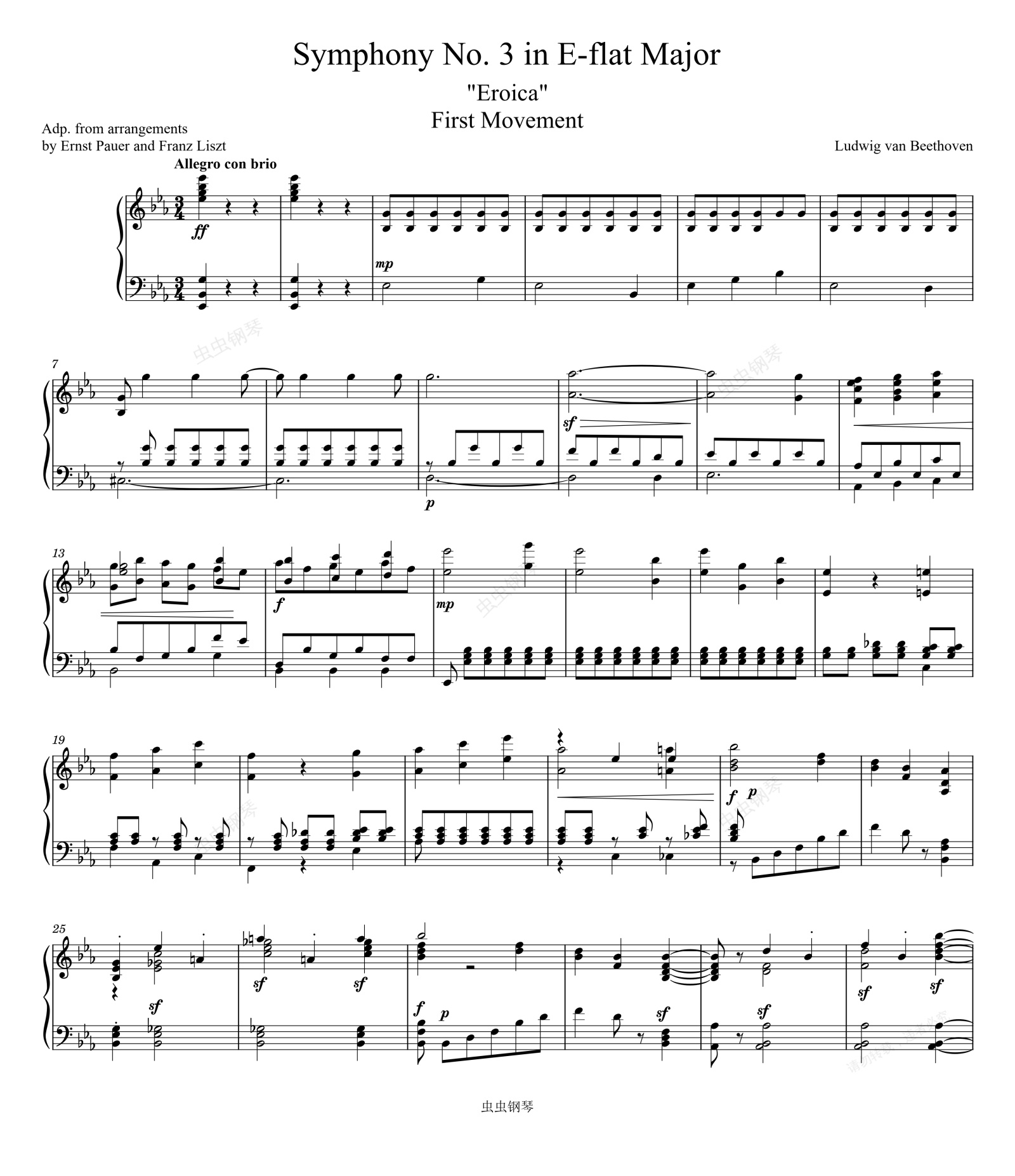 钢琴谱:Beethoven (Eroica) Symphony No. 3 in E-flat Major (1st movement) Piano solo