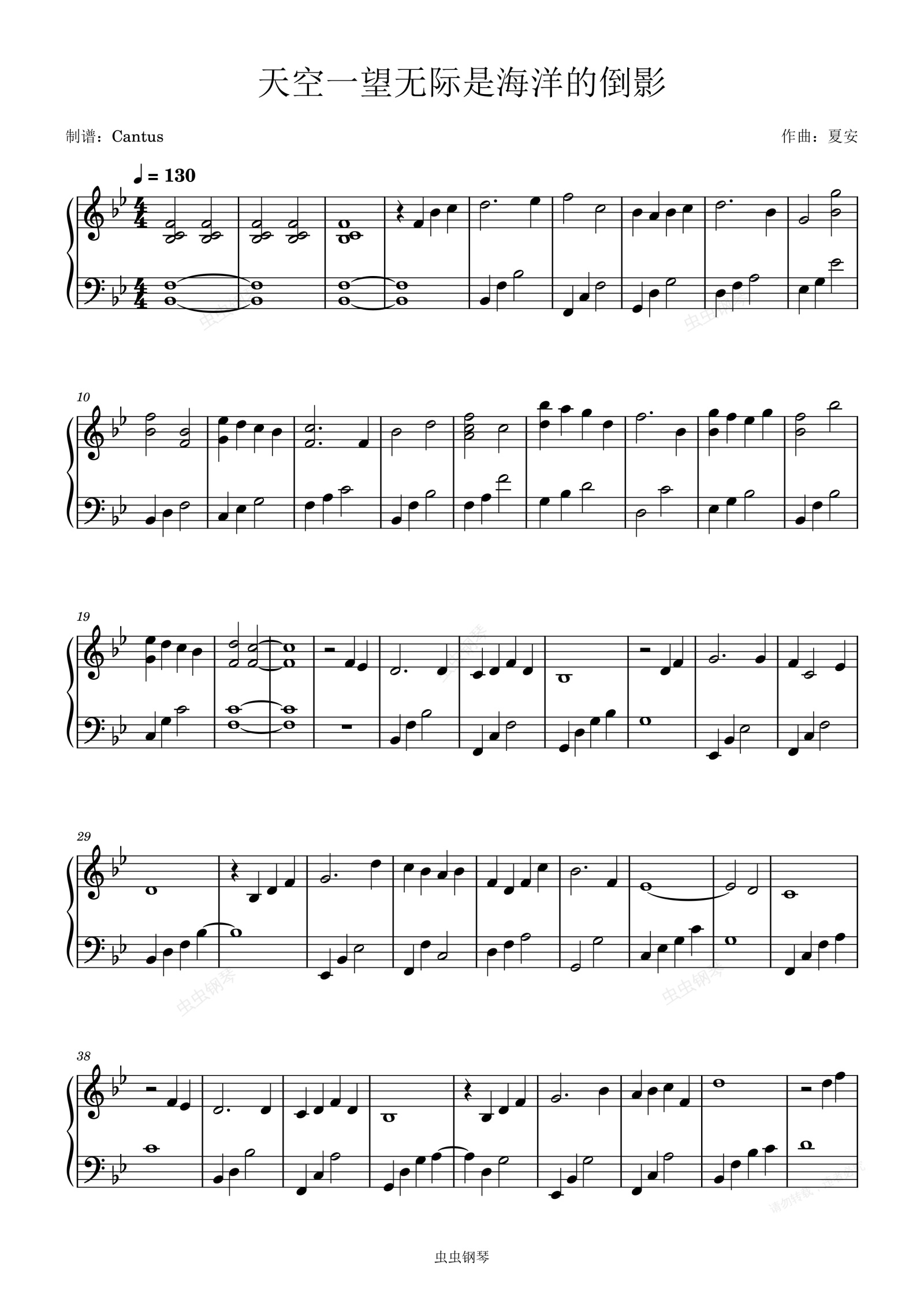 钢琴谱:天空一望无际是海洋的倒影-夏安