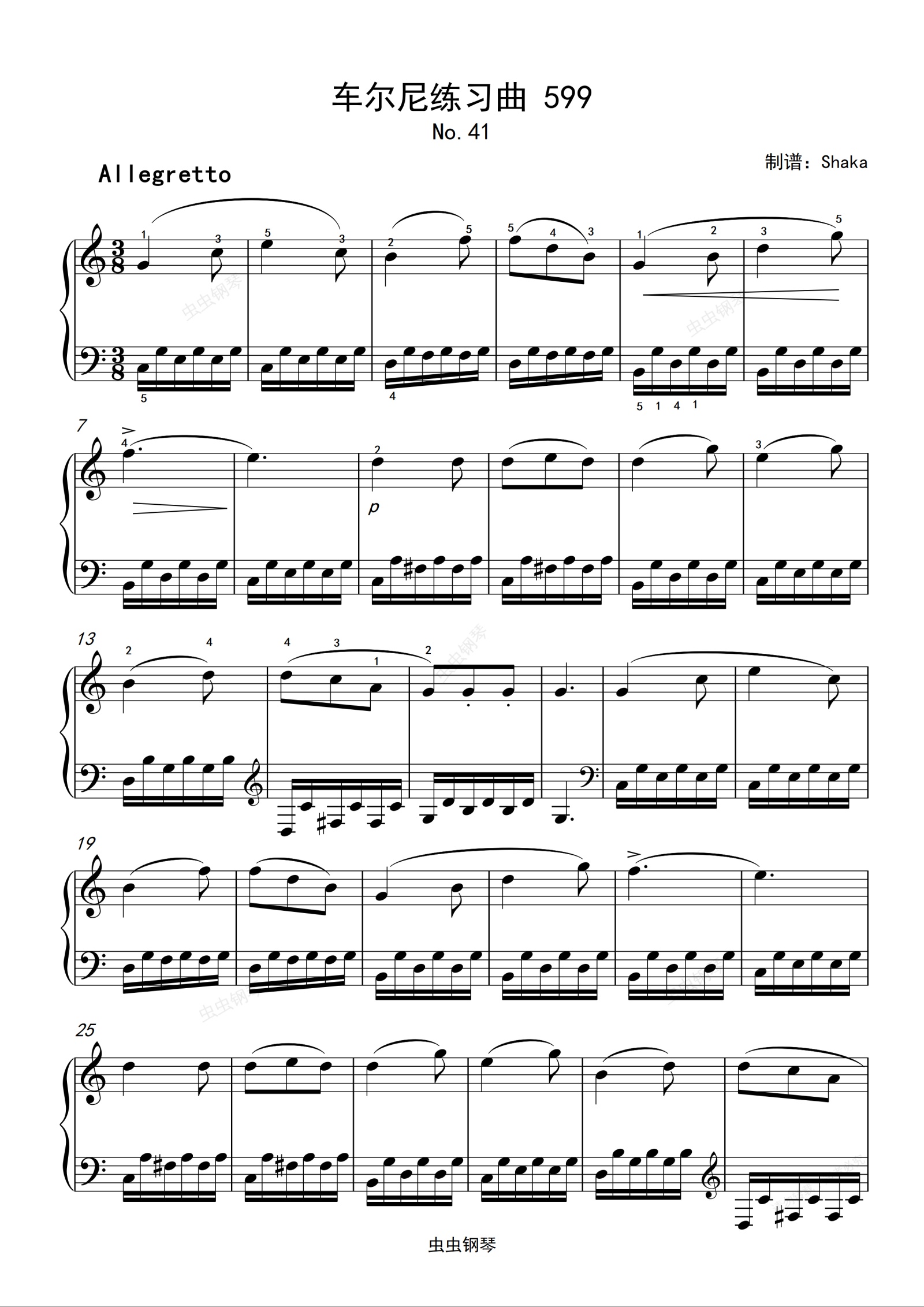 钢琴谱:车尔尼练习曲 599 No.41 C调版