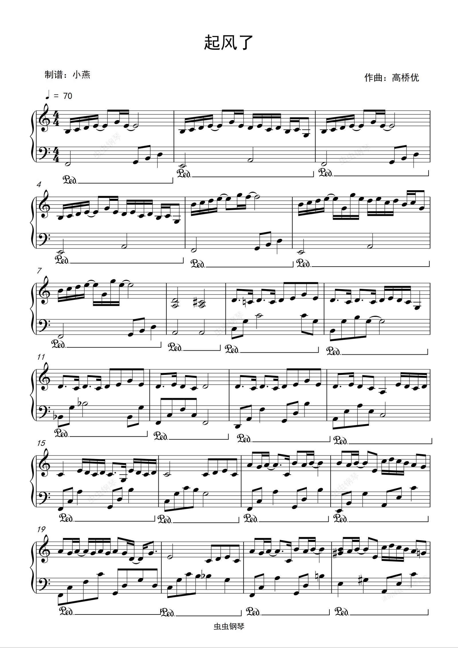 钢琴谱:起风了(简易版)